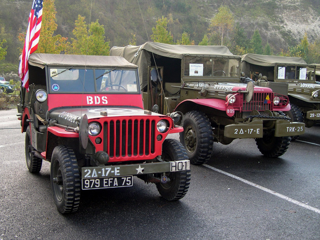 Quelques véhicules peu courant étaient de la partie, tels cette Kübelwagen ou ce Dodge WC 52 et cette Jeep Willys aux couleurs du BDS, Bomb Dismantal Service, unité de Déminage.