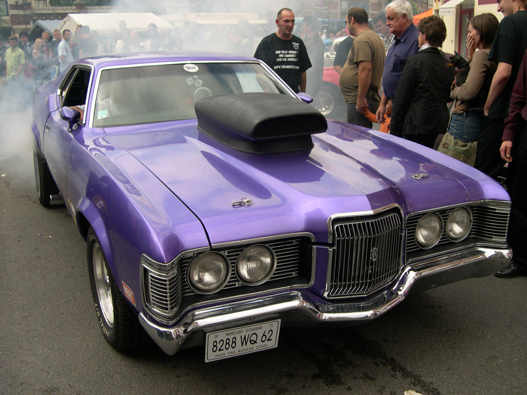 Ou cette Ford Mustang également recouverte d'une mat ou cette Mercury Cougar préparée, sortant d'un Burn out.