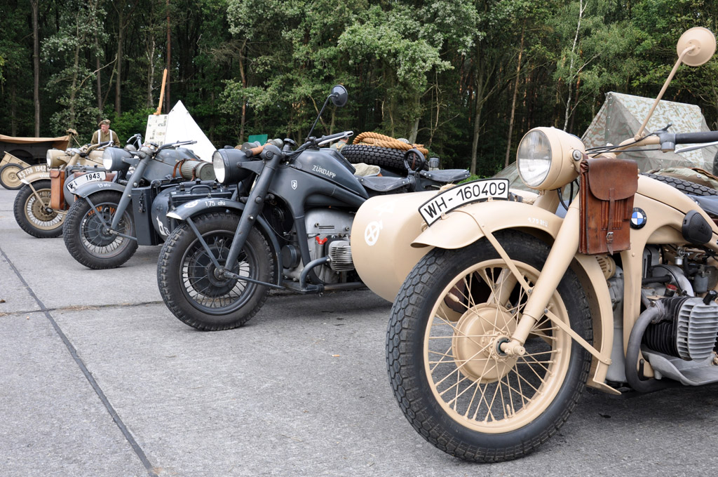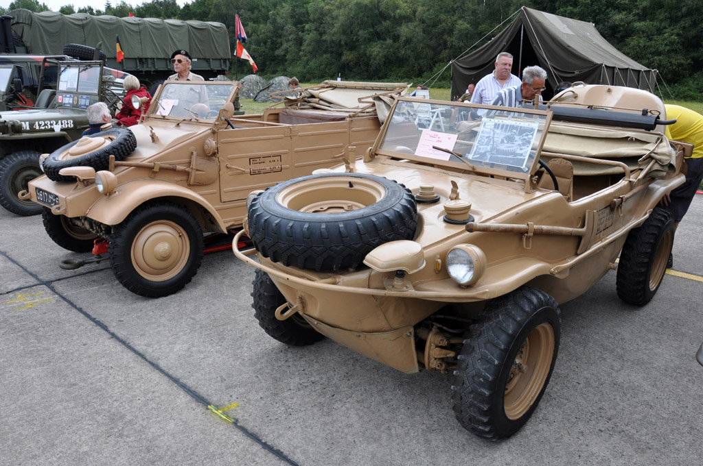 Quelques véhicules allemands, comme cette réplique de Fieseler Storch au 2/3, ces Kübel- et Schwimmwagen ou cet alignement de BMW et Zündapp.