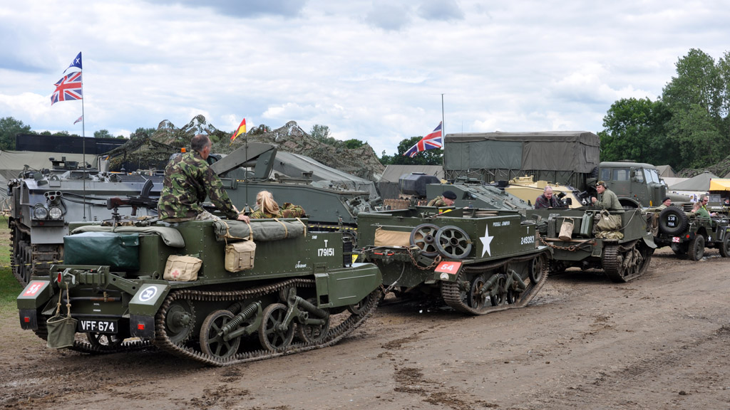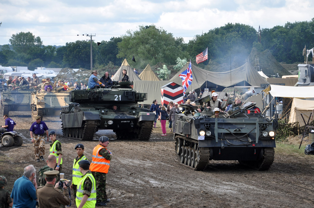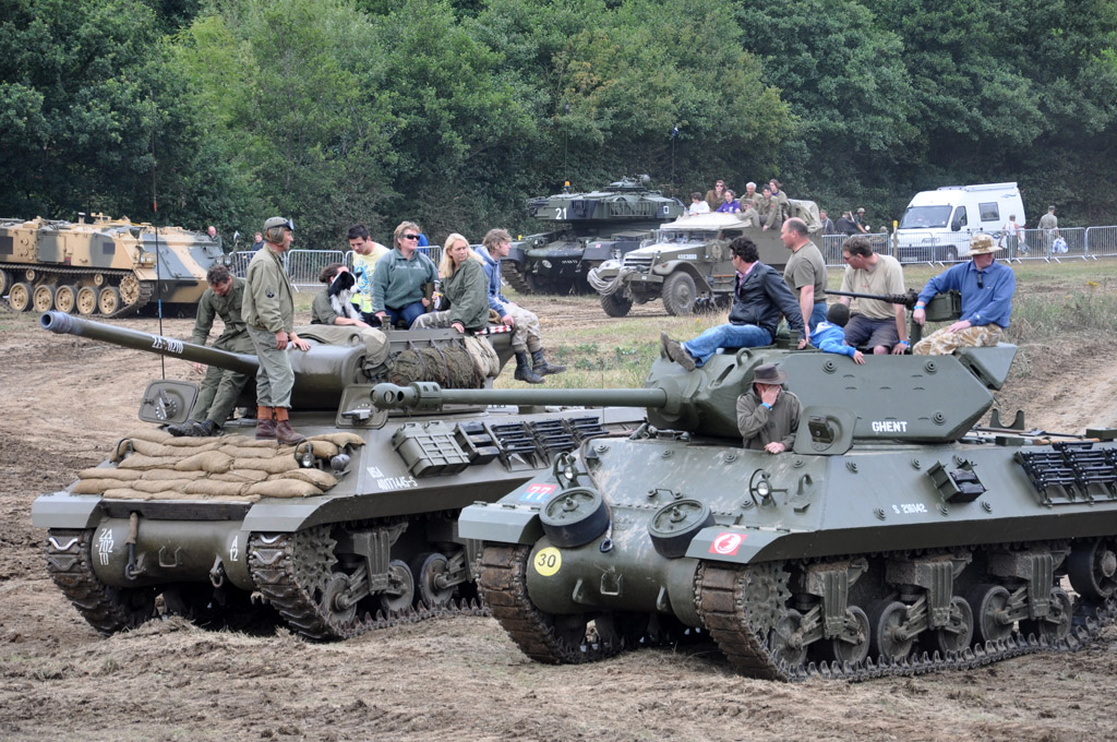 Contrairement à l'année passée, après les groupes de reconstitution, nous enchaînons directement avec la plus grande zone où sont installés divers véhicules, dont des blindés : un superbe Panzer IV, récemment restauré par le musée de Jordanie, mais malheureusement restauré pour le moment avec un moteur moderne de FV432, T34/85, Ram Kangaroo, Scimitar ou FV432.