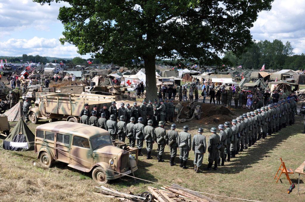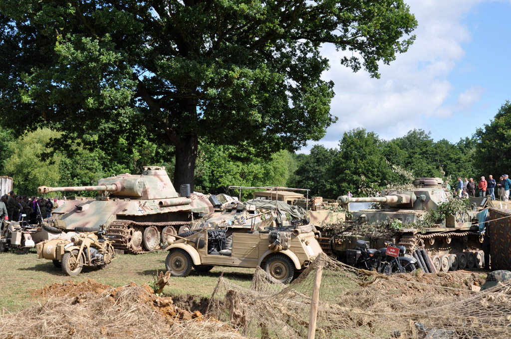 Nous arrivons ensuite du côté des groupes de reconstitution. Le campement allemand est toujours aussi impressionant. On y retrouve notamment le Panther et le Panzer IV de l'année dernière, ou également cette Kettenkrad, ou cette rarissime Steyer KdF.