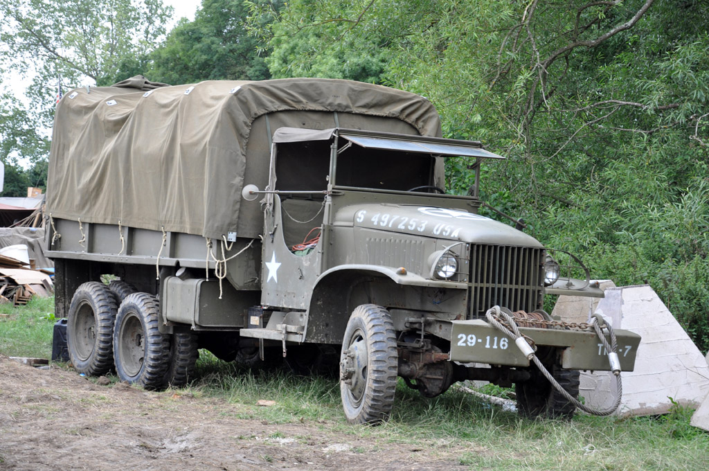 Nous retournons du côté des groupes de reconstition. Certains ne font pas les choses à motié, à l'image de ce GMC CCKW353 couché sur le côté. Autre véhicules trouvés au milieu de toutes ces tentes : GMC CCKW Bolster, Opel Kadett ou T34/85.