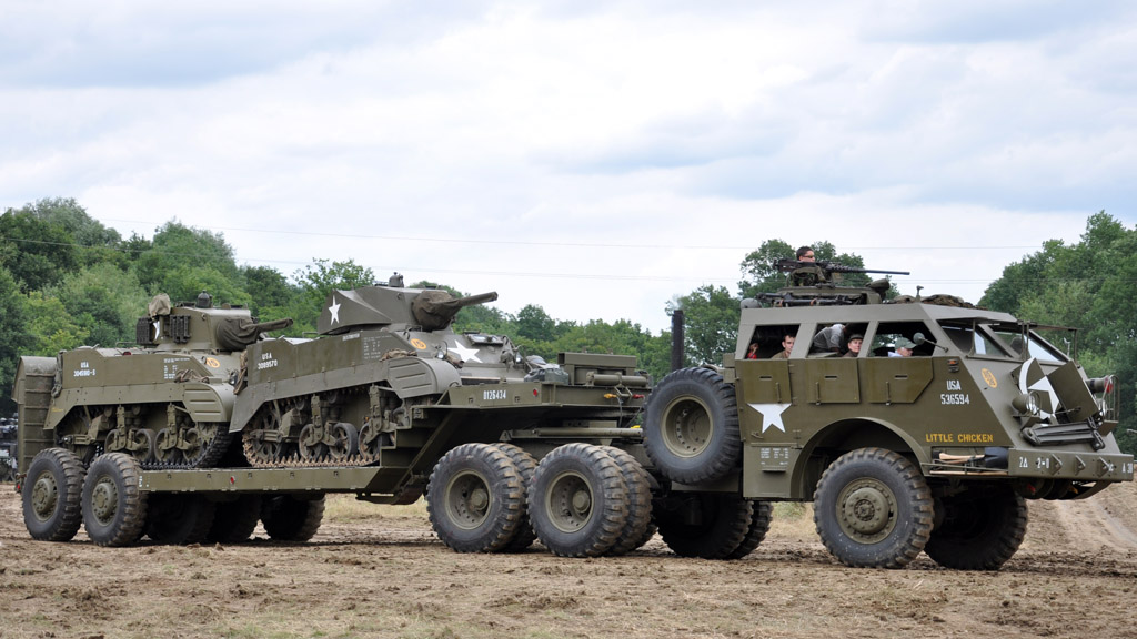 Autres véhicules lourds avec ce Scammel Explorer, ce M2 Cleytrac, ce Mack NR ou comme l'année dernière, ce M26 Pacific tractant une remorque M15, sur laquelle prenaient place cette fois-ci deux Stuart M5A1.
