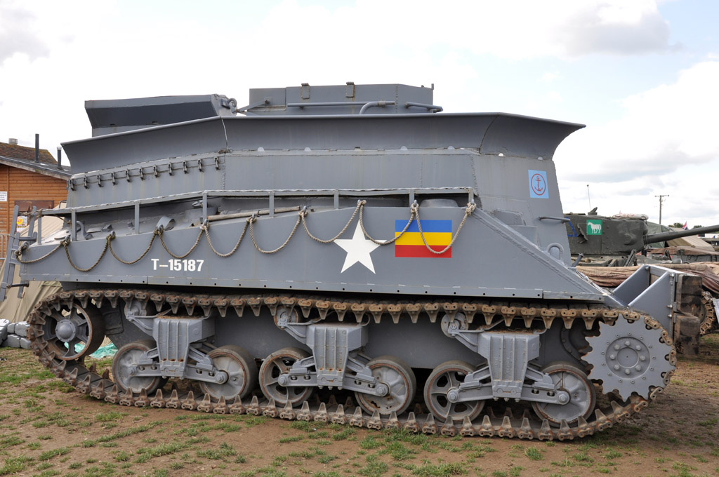 A mesure que l'on avance, on continue de tomber sur des véhicules du Commonwealth peu courants : un Bren Carrier australien, Ford F30 et F60, Daimler Dingo équipée d'une tourelle, ce Sherman BARV ou cette réplique d'automitrailleuse Marmon Herrington.