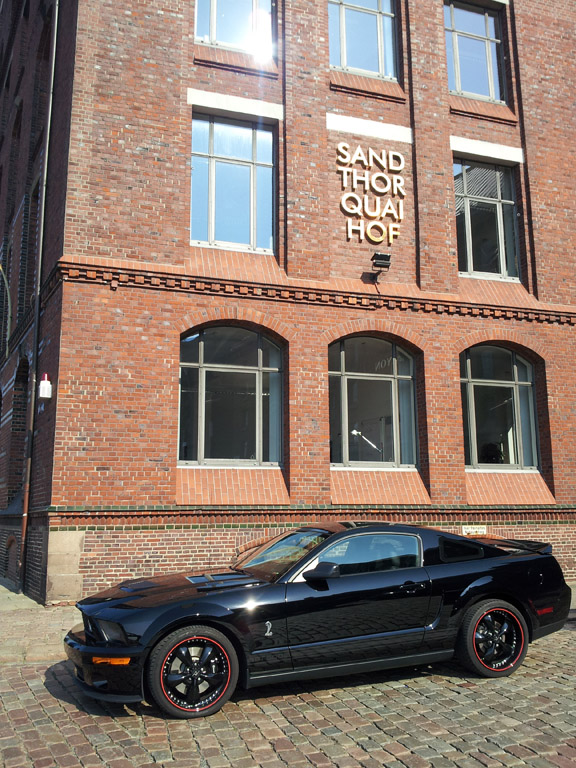 En revenant de l'Autohaus Ruprich, je suis repassé par le quartier d'Hafencity pour assister au Crusing Treffen, rencart mensuel qui réunit plusieurs propriétaires d'américaines pour ensuite effectuer une balade dans la ville. On y retrouvait principalement de nombreuses Mustang, Camaro et Corvette, anciennes et modernes.