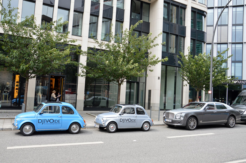 Fiat Dino Coupé ou ce duo de 500 suivies d'une énorme Bentley Mulsanne.