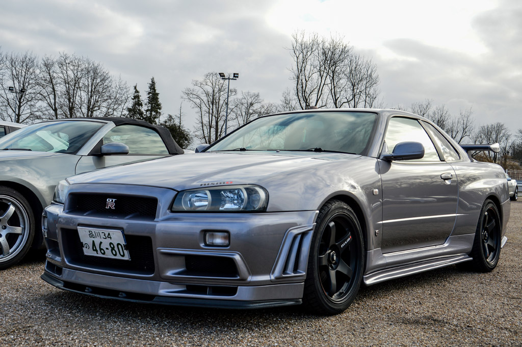 Il y avait aussi des Anglaises (Aston Martin V8 Vantage, Caterham 7,...) ou des Japonaises comme cette Nissan Skyline R34...
