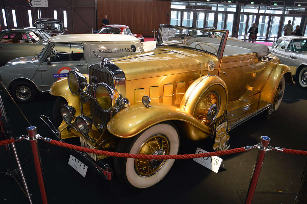 Une vente aux enchères de voitures anciennes était organisée au sein du salon par la maison d'enchères Coy. Une centaine de modèles étaient rassemblés dans deux pavillons différents, ici : Lancia Aurelia, Jaguar Type E, Aston Martin DB5, Ferrari 246 GT Dino ou Cadillac Fleetwoord de 1931.