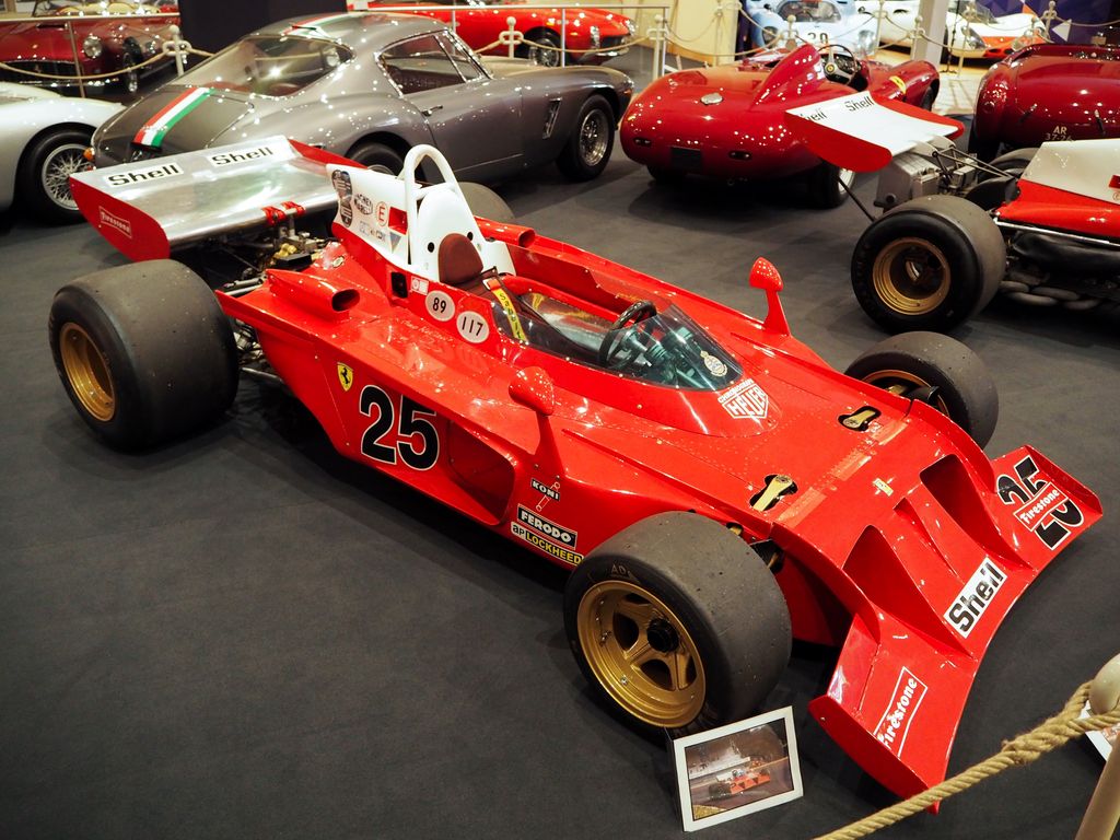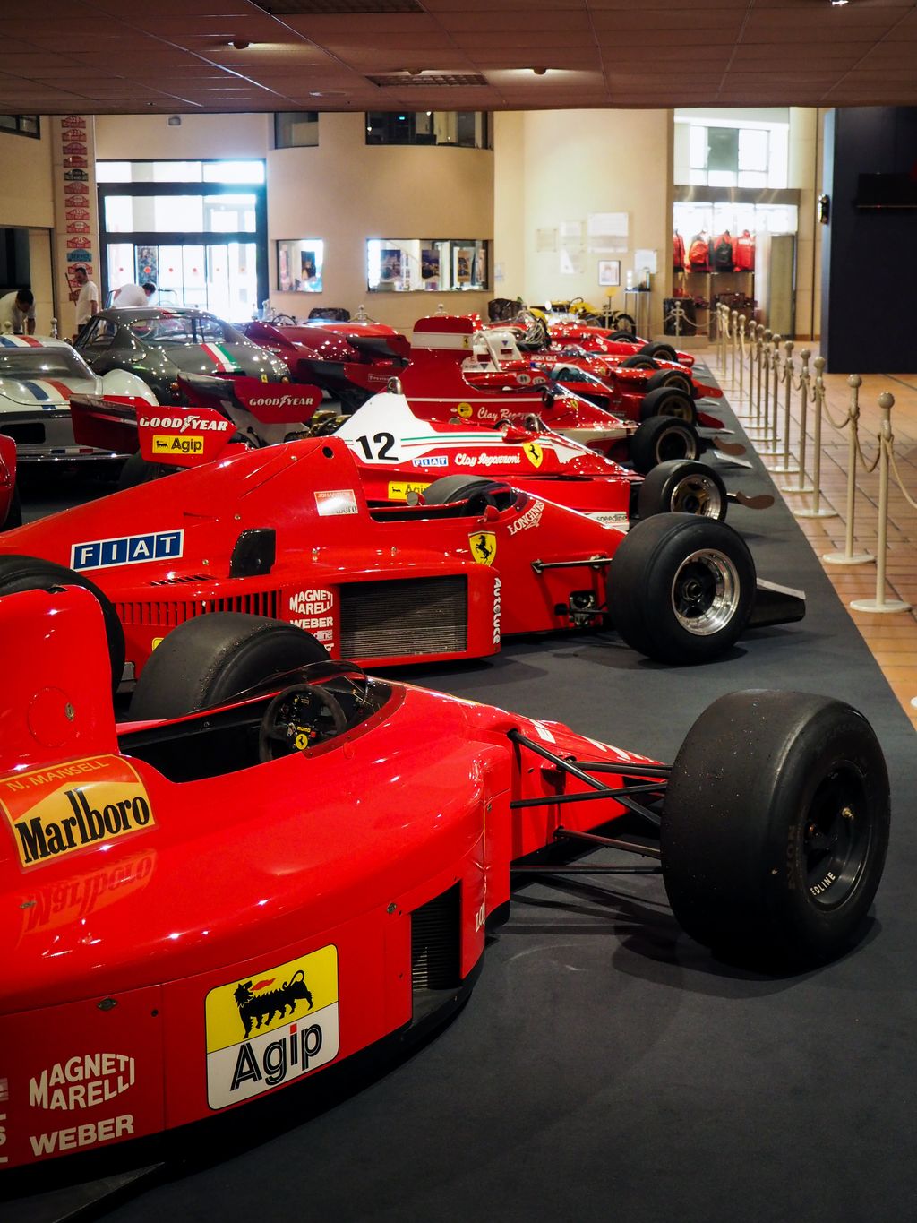 A l'intérieur, c'est la bonne surprise du jour : j'avais repéré qu'une exposition spéciale Ferrari avec du beau monde annoncé s'y tenait, mais l'exposition s'était terminé quelques jours plus tôt. Cependant, de nombreux véhicules de l'exposition semblent être encore présents ! Et on a le droit à quelques beaux exemplaires. Sur le parterre du milieu sont rassemblées les modèles de compétition : d'un côté les Formule 1 de différentes époques, de l'autre, celles dérivées des modèles de tourime et prototypes : 225 S, 250 GT SWB, 250 LM, 275 GTB/2, 365 GTB/4, 308 Groupe IV,...