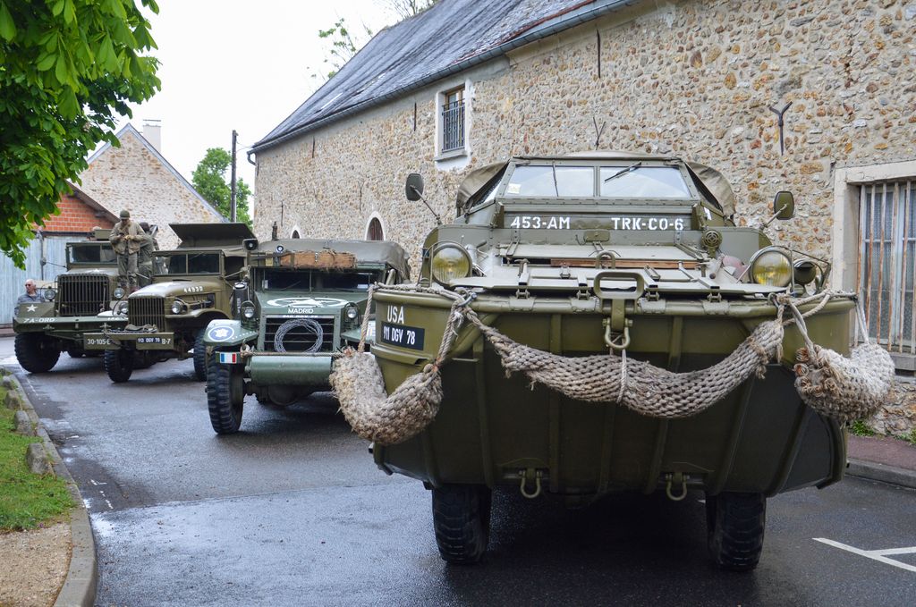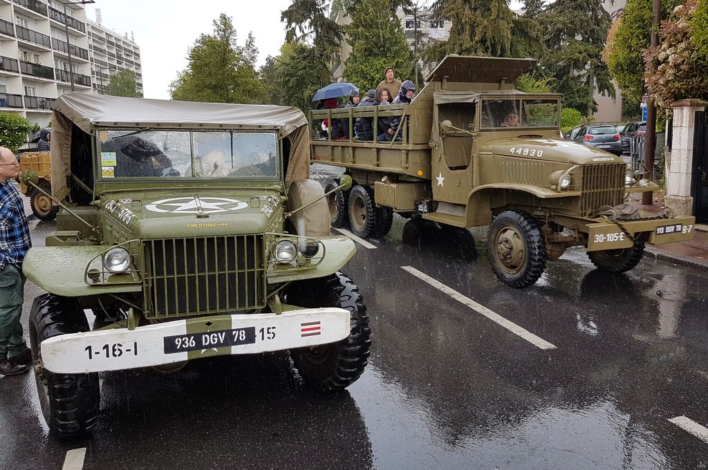 Pour les Commémorations du 8 mai, l'association UNIVEM était présente sur trois communes : Enghien-les-Bains, Les-Loges-en-Josas et Vélizy. Un convoi a pris la direction d'Enghien-les-Bains avec un Scout Car, un Dodge Command Car et quelques Jeep, tandis que je faisais partie du deuxème convoi qui prenait la direction des Loges-en-Josas au matin, puis Vélizy l'après-midi. Au menu, du lourd, GMC DUKW, Ward-La-France M1A1, International M426 et sa remorque, Half-Track M5, International M-2-4, GMC CCKW benne ainsi que de nombreuses Jeep, dont la SAS que je conduisais. Cependant, sans pare-brise et capote un jour de pluie, ce n'était pas toujours évident !