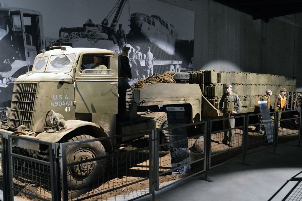 Quelques autres rares véhicules sont là : M4 High Speed Tractor avec obusier de 155mm, Half-Track, Ford M8, White 666, Diamond T 968, bulldozer Caterpillar, Brockway B666 porte-ponts (le 4ème de la semaine !), des projecteurs d'époque, ou encore une Jeep Follow-Me.
