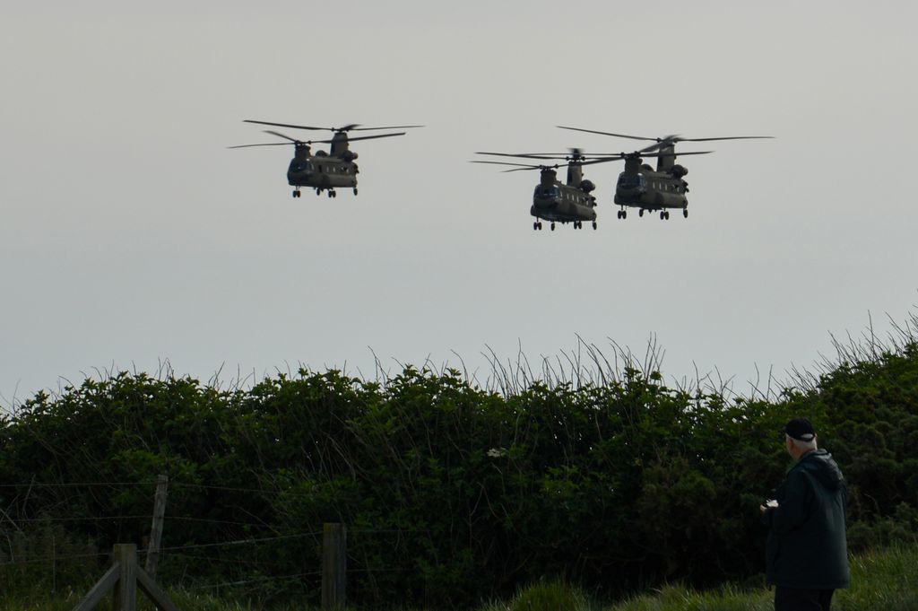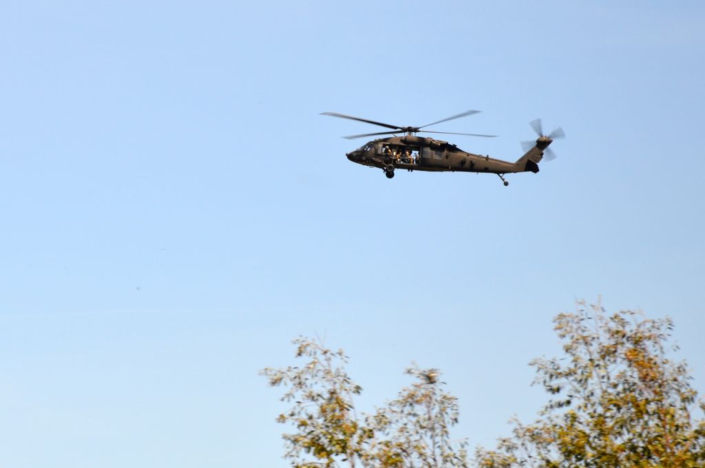 Le spectacle est aussi dans le ciel, avec un ballet incessant d'hélicoptères Black Hawk et Chinool de l'Armée Américaine.
