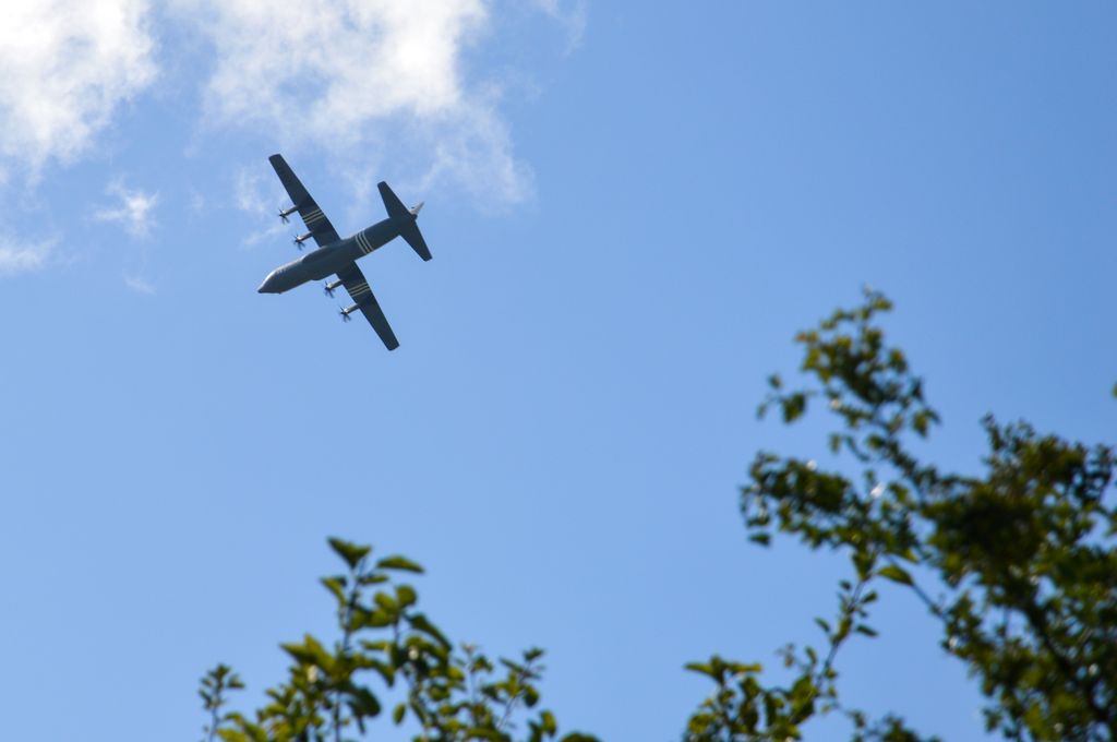 Une fois de plus, il faut toujours jeter un oeil dans le ciel : C-130 ou C-47.