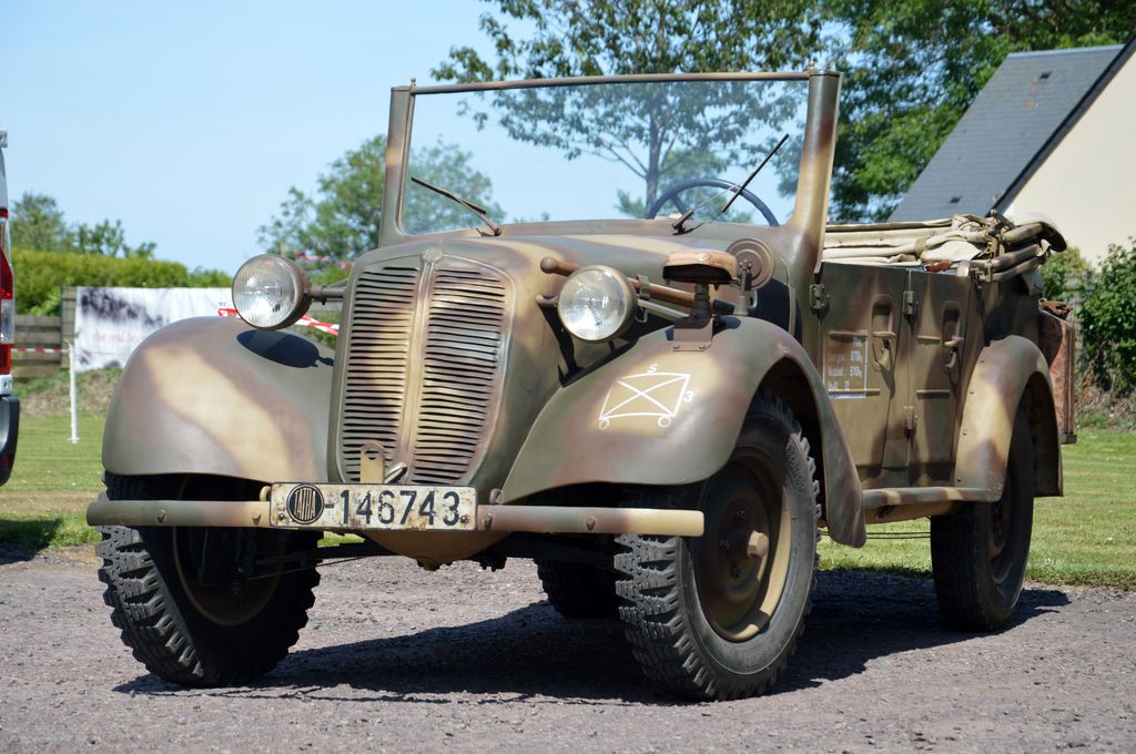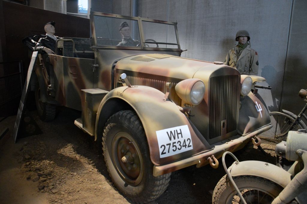 Petit tour en Jeep ensuite pour aller faire un marchand de militaria, avec au passage, la rencontre de cette Tatra 57 et de ces deux Schwimmwagen. Puis, près du WN62, cette Volkswagen Type 87 (peut-être une réplique ?) sera vue, ainsi que ces GMC sur la plage d'Omaha Beach.