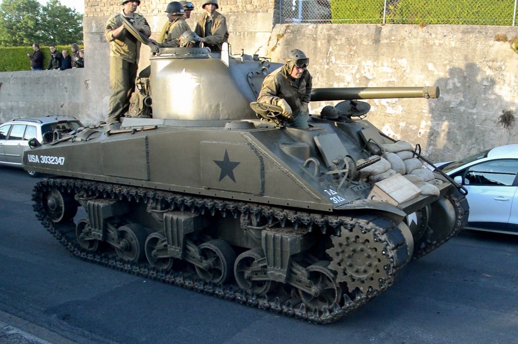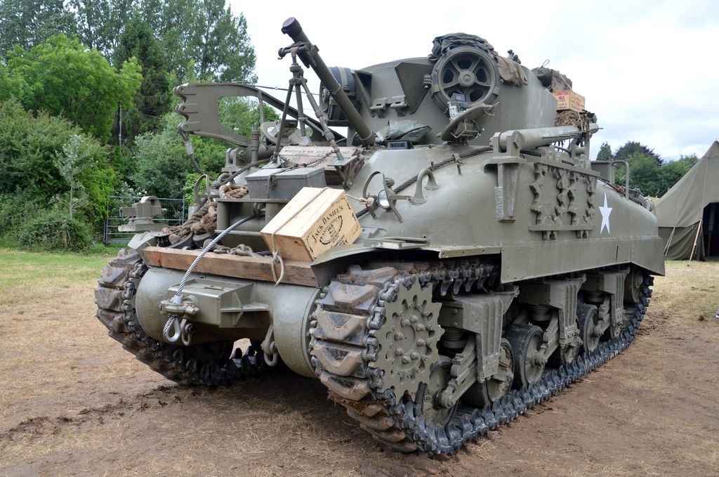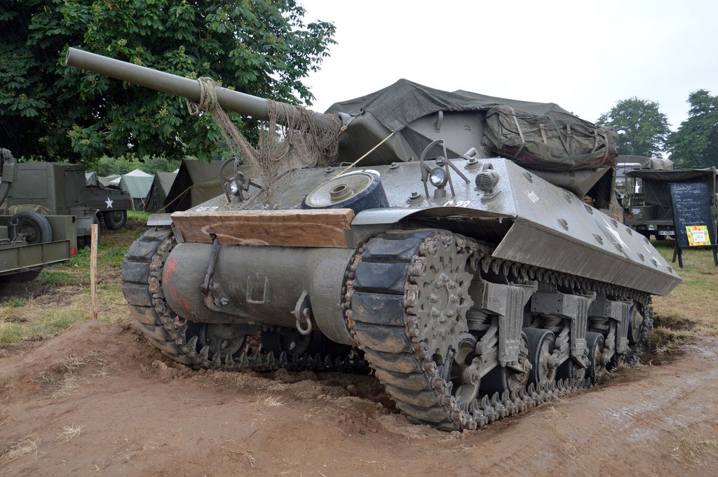 Le 7 juin, après avoir sorti un peu le Sherman dans le champ en face du camp et avoir fait faire un tour à un vétéran de la 2nd Armored Division qui a débarqué à Vierville-sur-Mer le 6 juin (!), direction le camp Geronimo à Sainte-Mère-Eglise. Que de matériel présent ! Beaucoup de chars notamment : trois Sherman M4A1 (des Grizzly en fait), un M7B1 Priest et un Tank Destroyer M10. Cependant, des espaces vides semblent indiquer que des chars sont manquants.