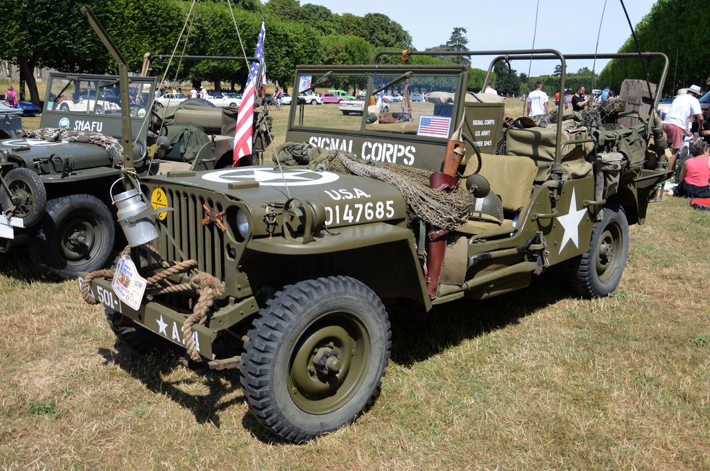 Le Scout Car, la Jeep 2ème DB, la cuisine roulantes, quelques tentes et des accessoires constituèrent ainsi un petit bivouac. Autre véhicules amenés, et non des moindres, le Half-Track M16 attelé à la remorque porte-munitions M10, l'International M426 et sa semi-remorque, le GMC DUKW (à bord duquel j'ai voyagé), le prototype de de VBL Renault, des Dodge Command ou encore les Jeep SAS et Navy. Des Jeep des membres (dont une peu courante canadienne et une rare rallongée aux couleurs du Signal Corps) complétèrent l'exposition militaire.
