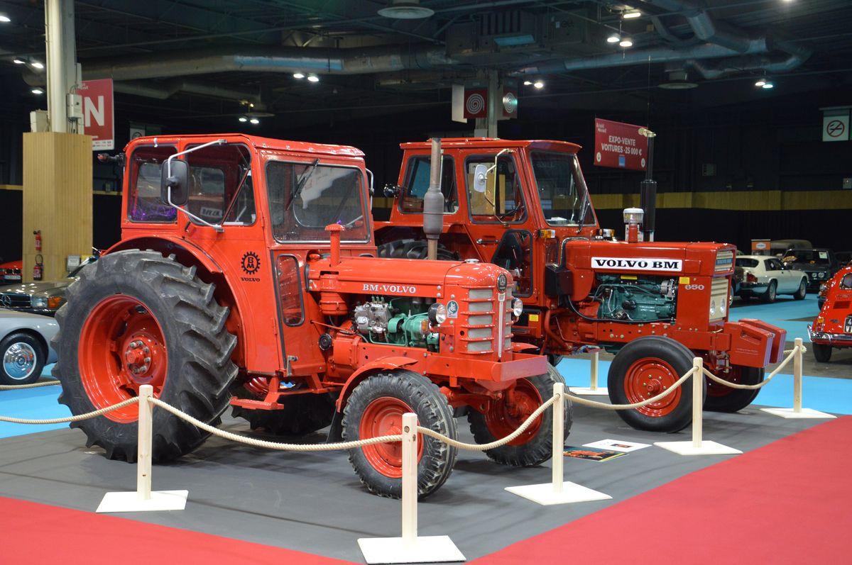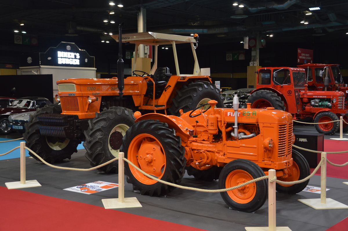Une autre exposition est consacrée aux tracteurs construits par des marques autmobiles avec plusieurs pièces intéressantes : Renault 3042 équipé d'un système rotapède, Renault HI à chenilles, Citroën Type J, des Porsche Junior et Master, un petit Fiat 25R devant un plus gros Someca/Fiat 1300, ou encore plus gros Fiat Versatile, un MB Trac ou encore ces Volvo-BM.