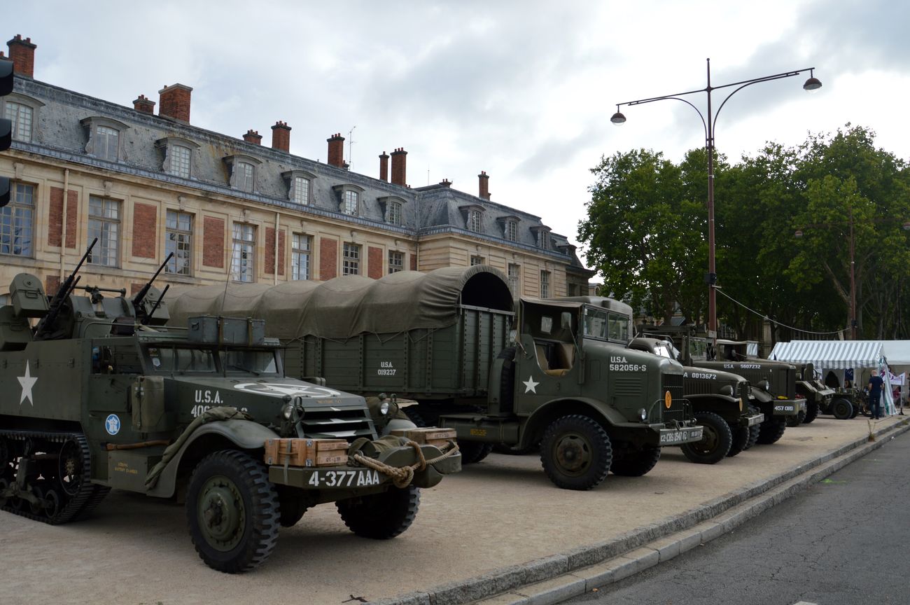 L'arrivée des Half-Track devant le château de Versailles et l'alignement des véhicules le long de l'avenue de Paris avant qu'ils ne soient placés en bout de l'avenue de Paris, face au château, pour servir de barrage anti-voiture-bélier. Egalement un Unimog appartenant à une association de scouts.