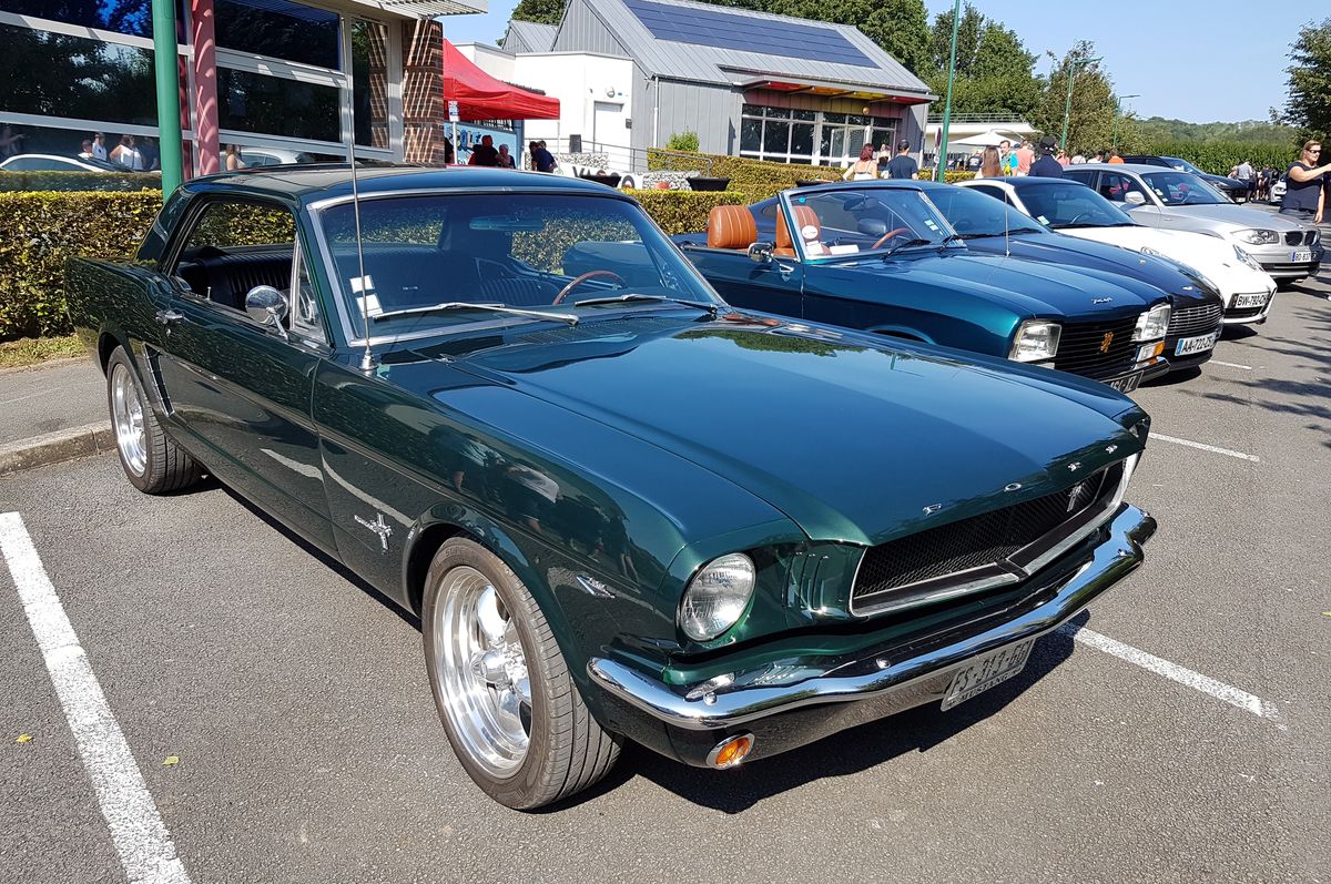 Plusieurs américaines, anciennes et modernes : Chevrolet Step-side, Dodge Challenger, Ford Mustang,...