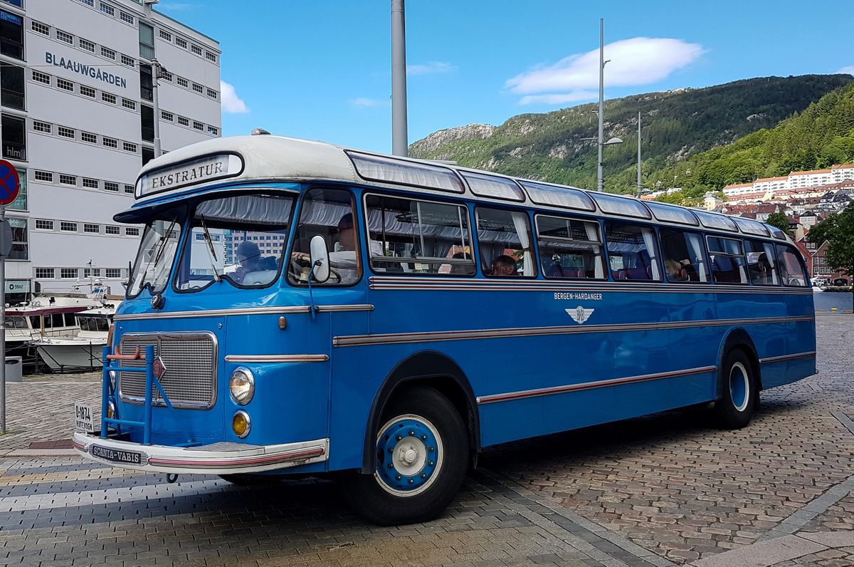 Au niveau des utilitaires, de nombreux vieux tracteurs Massey-Ferguson servaient de décoration dans les endroits touristiques. Vu à Andalsnes ce magnifique Diamont T ou encore à Bergen ce bus Scania servant encore comme transport touristique.
