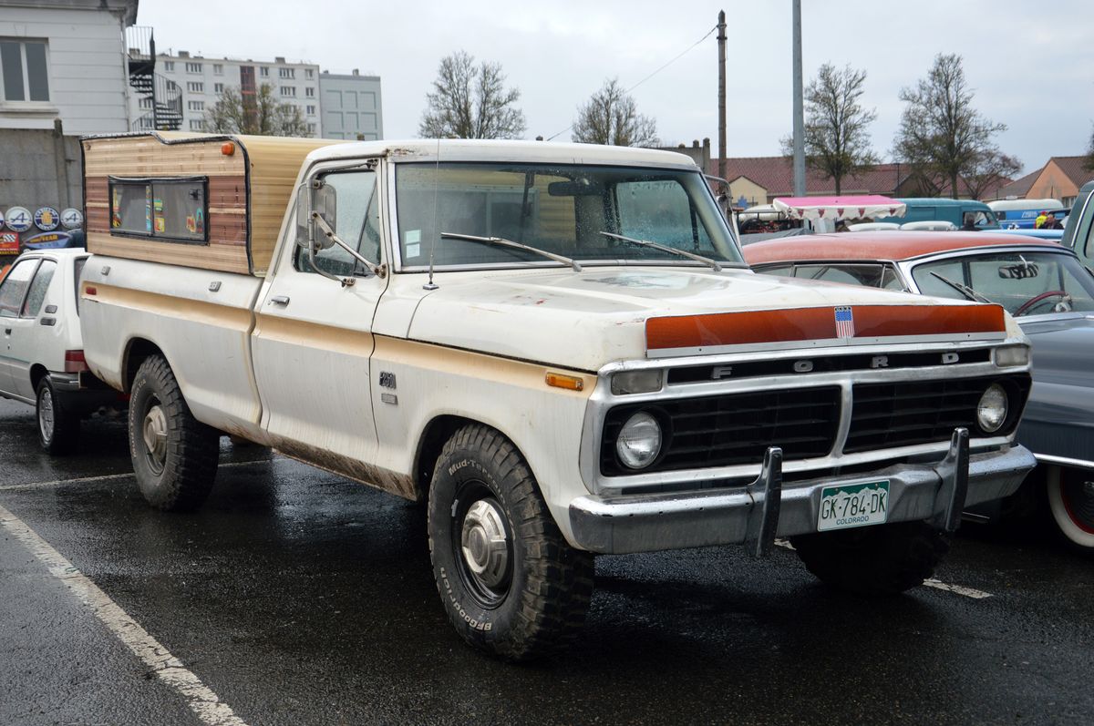 Plusieurs pick-up également : Ford F250 de plusieurs générations ou ce Chevrolet C1500 négligemment garé et rendant la 4CV à côté vraiment minuscule.