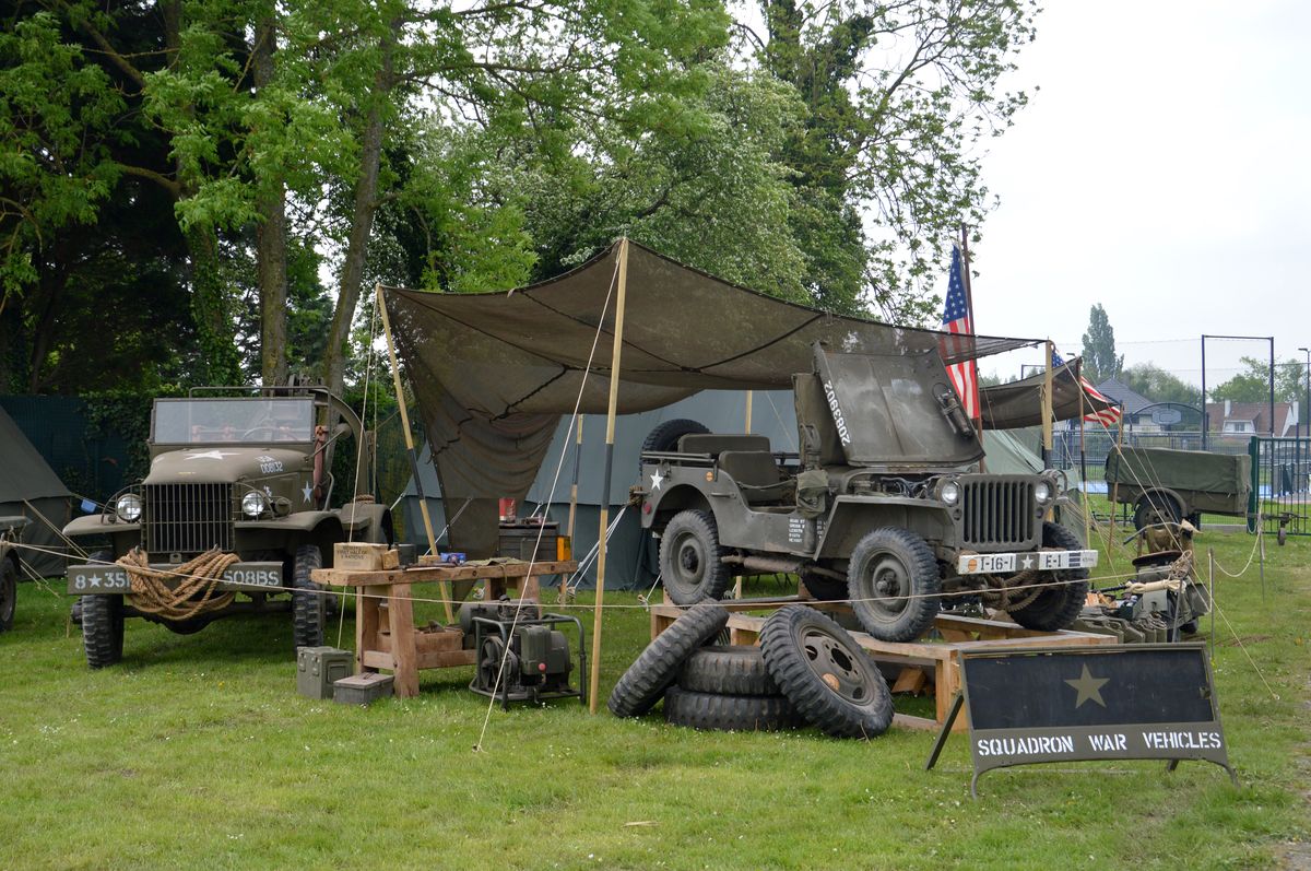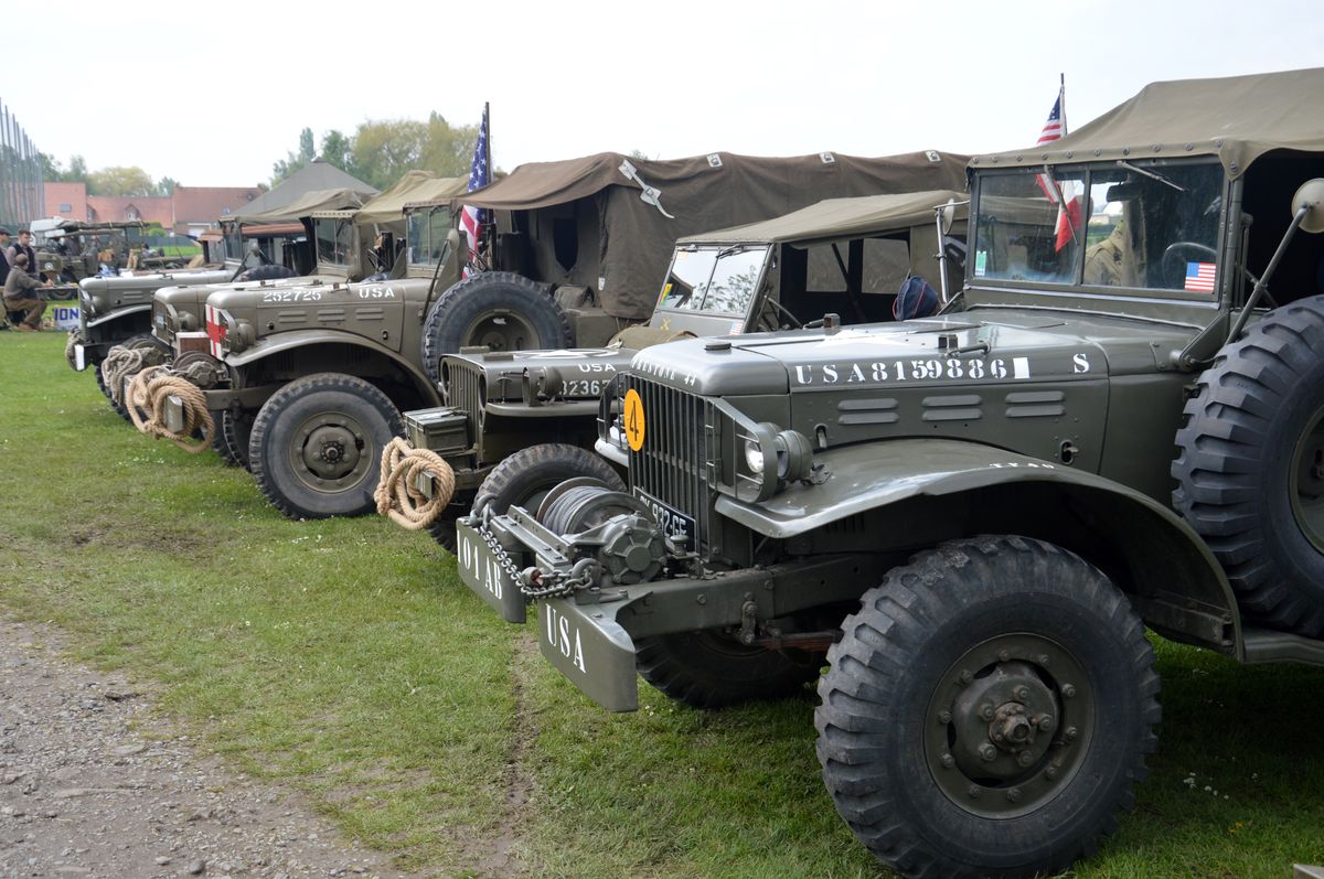 Quelques véhicules peu courants : Chevrolet M6 porte-bombes, Dodge WC 1/2 ton, Ford M8 ou M29 Weasel.