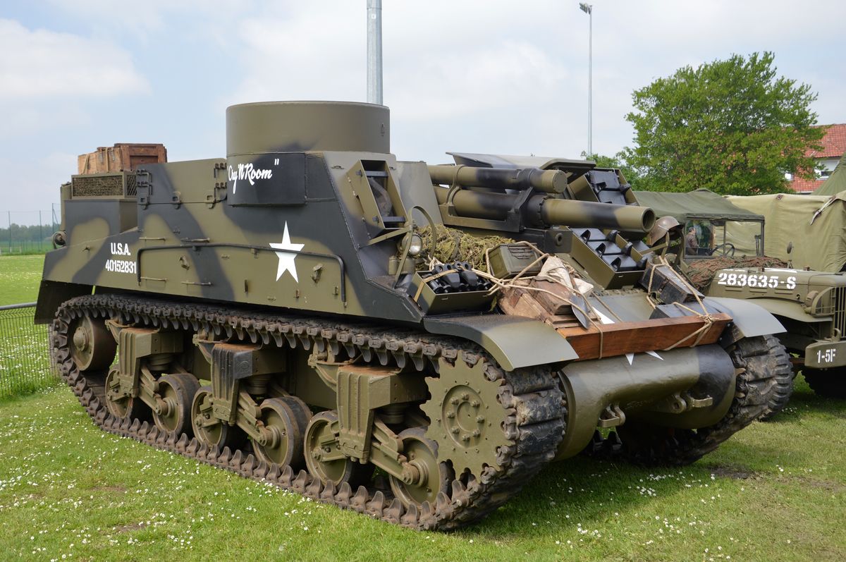 Dès l'entrée, on était accueilli par la dernière restauration du Groupe Black Bull, et pas des moindres : un imposant automoteur M7B1 Priest !