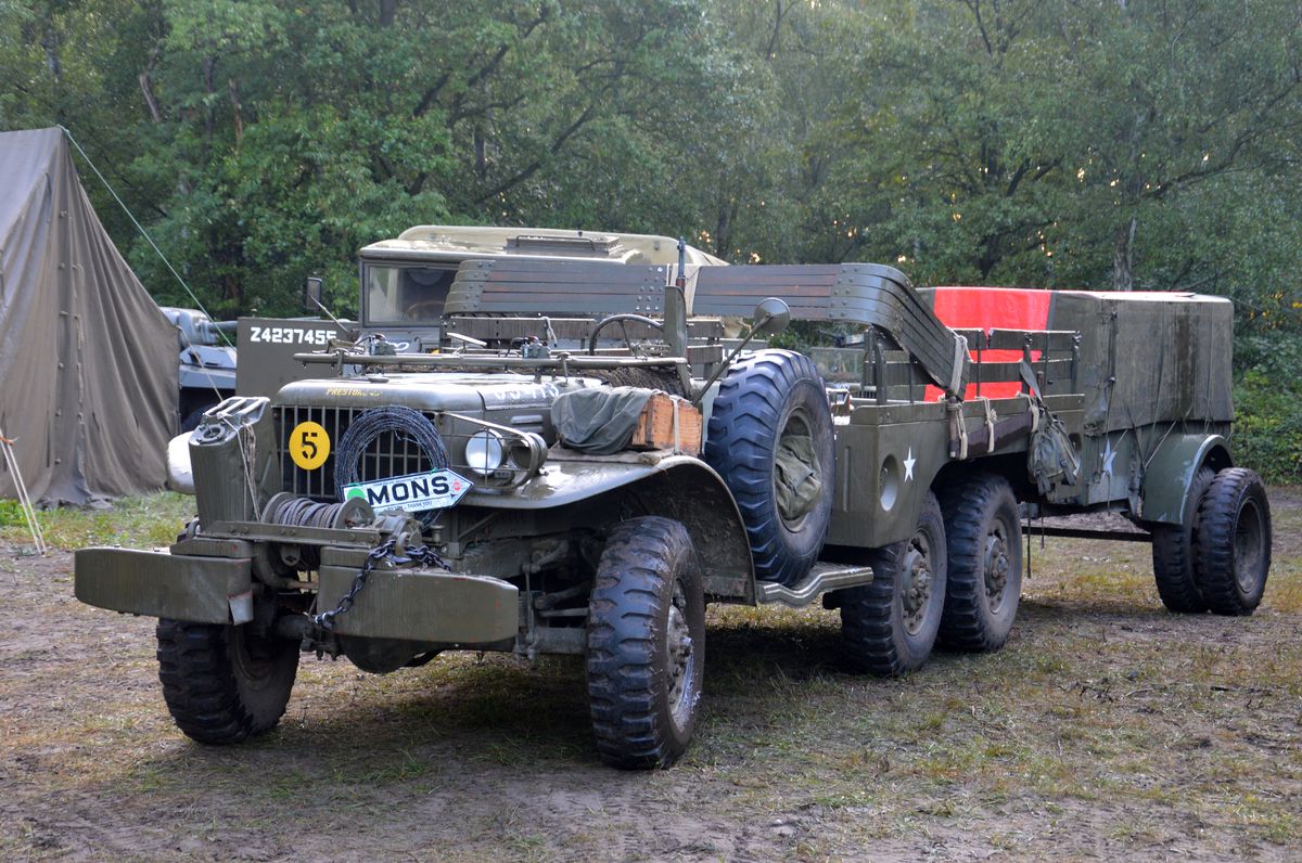 Même du côté des véhicules légers, c'est moins chargé que dans les grandes années. Néanmoins, du beau matériel tout de même : DUKW, Ward-La-France, Chevrolet M6, ou un Chevrolet Canada C60 tractant une rare remorque.