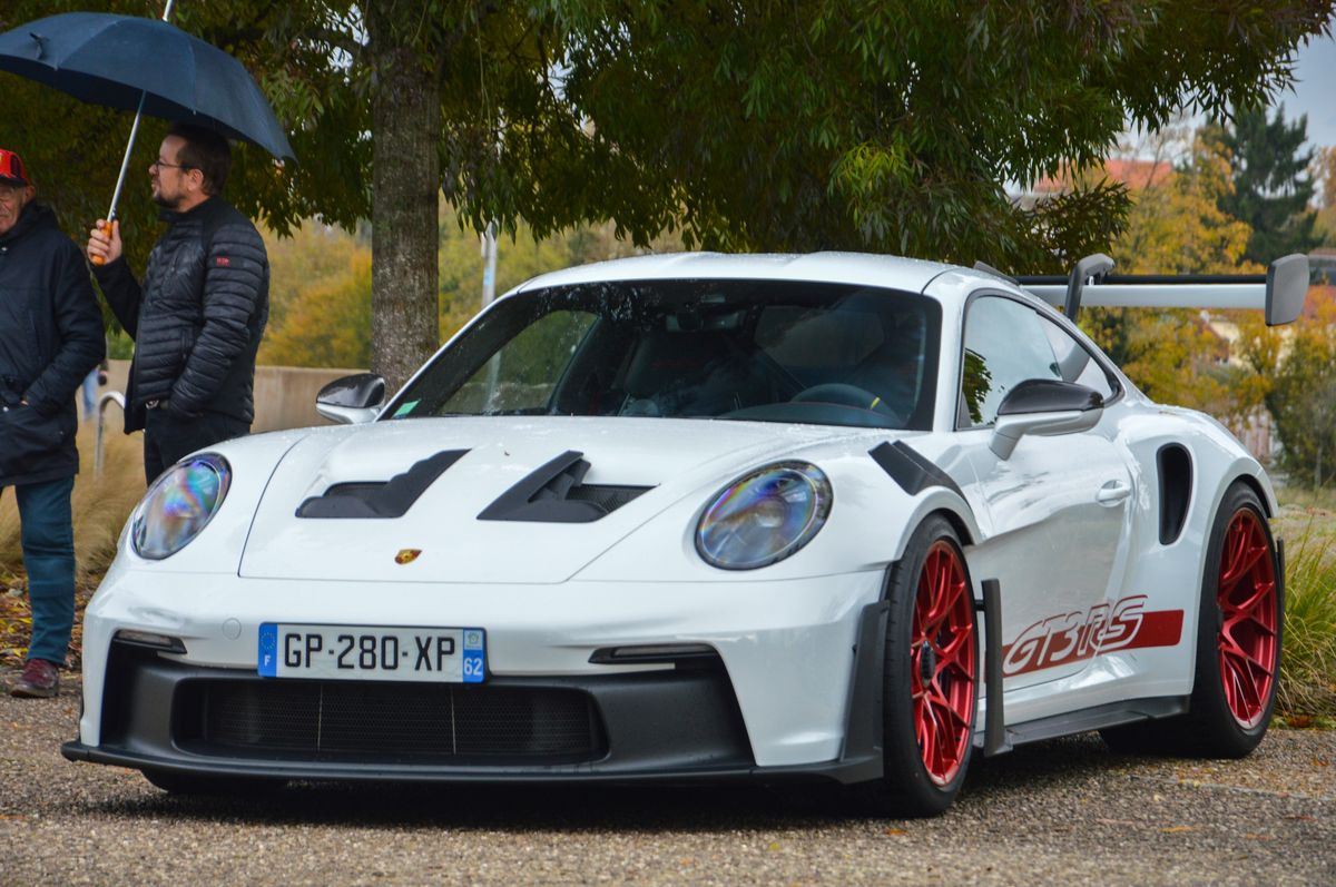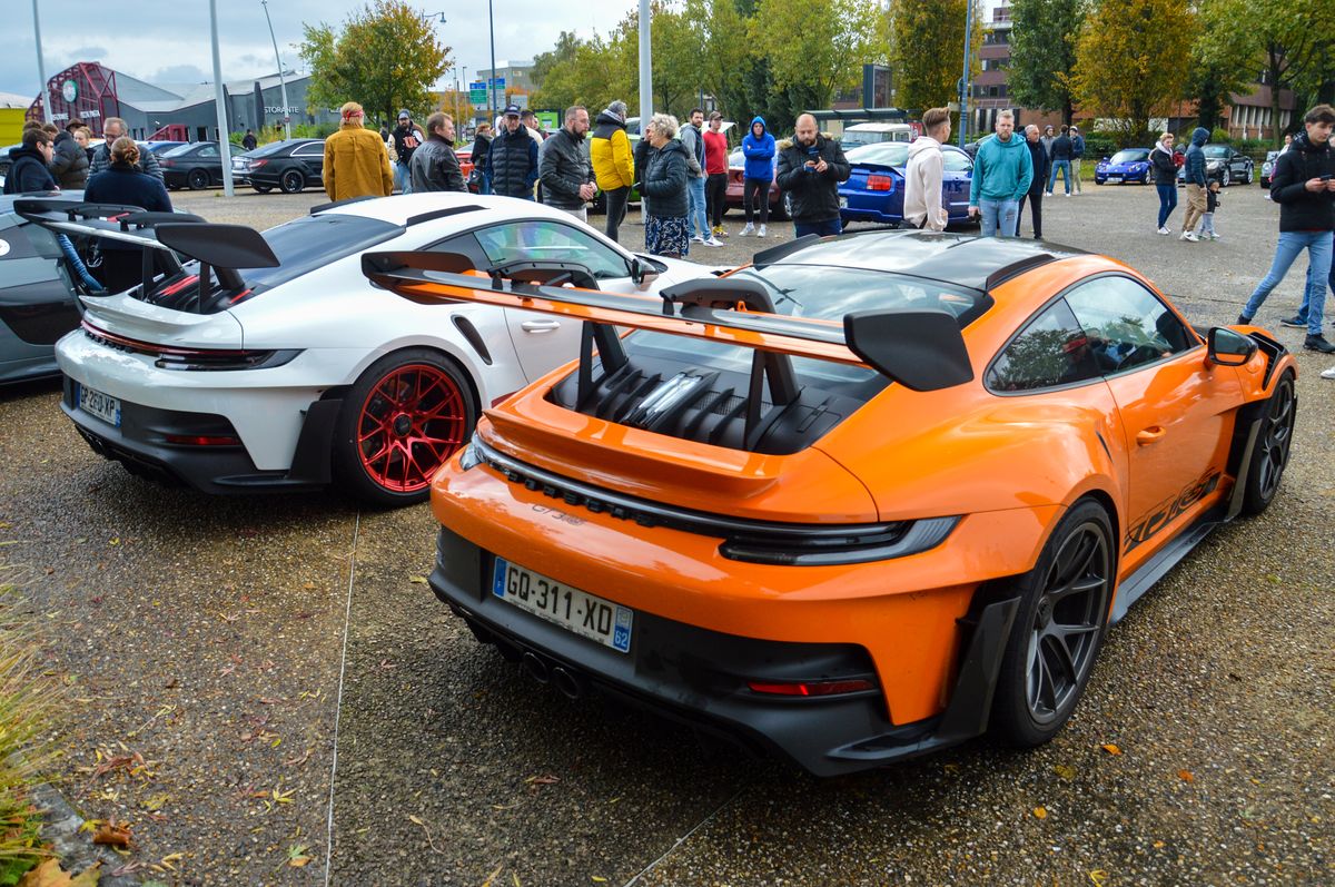 Ca commence fort avec la présente de deux exemplaires de la toute dernière 911 GT3 RS (992), dans des livrées rappelant la première (996) GT3 RS pour la blanche, et la 997 pour l'orange. Elles ont perdu en finesse, mais il faut reconnaître que c'est impressionant.