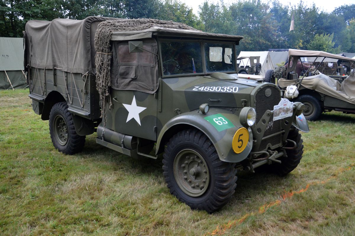Plusieurs véhicules britanniques cette fois-ci à commencer par ce qui semble être un Bedford MS. C'est un modèle sorti en 1939 sur le marché civil, dont la production s'est arrêtée pendant la guerre et a repris sous la même forme après la guerre. Pendant la guerre, de nombreux exemplaires civils ont été réquisitionnés par l'Armée anglaise. Il s'agit probablement d'un civil d'après guerre de par sa conduite à gauche, le modèle ayant également été exporté en Europe continentale après-guerre. A voir également ce Fordson WOT2, cette Loyd Carrier habituée ou encore ces Jeep Willys en version des troupes aéroportées britanniques.