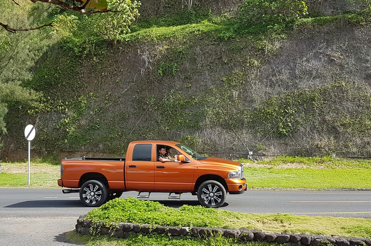 On dirait que la majorité des véhicules se séparent en deux grandes catégories : les citadines européennes (et surtout françaises), et les pick-up, dont les représentants les plus nombreux sont les Toyoya Hilux et les Ford Ranger. Mais j'ai été surpris de voir une belle quantité de pick-ups américains en tous genres : du pick-up ayant quelques décennies dans son jus au pick-up flambant neuf, en passant par des modèles ayant déjà quelques années. On retrouve les trois grandes marques, Ford (F-150), Dodge (Ram 1500, 2500, Dakota,...), ou Chevrolet (Silverado, C/K,...). Il est vrai que la côte ouest des Etats-Unis n'est pas si loin.