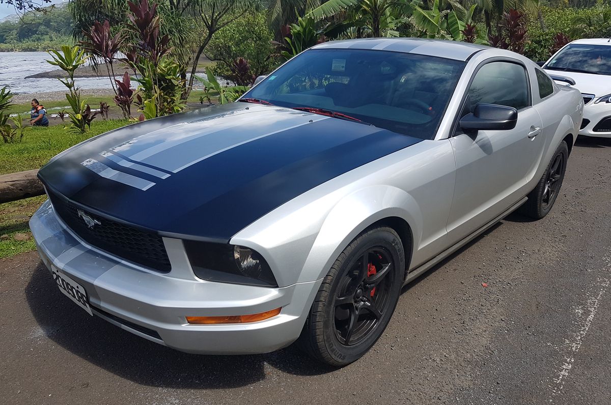 Bien que la Polynésie ne soit pas le terrain idéal pour elles, on trouvait quelques voitures de sport. Surtout des Porsche, comme cette Boxster, bien que la plupart soient des Paramera ou des Macan récents. Quelques Japonaises à l'instar de cette Nissan 350Z tunée. Et comme on retrouve pas mal de véhicules américains, de nombreuses Ford Mustang sont à voir.