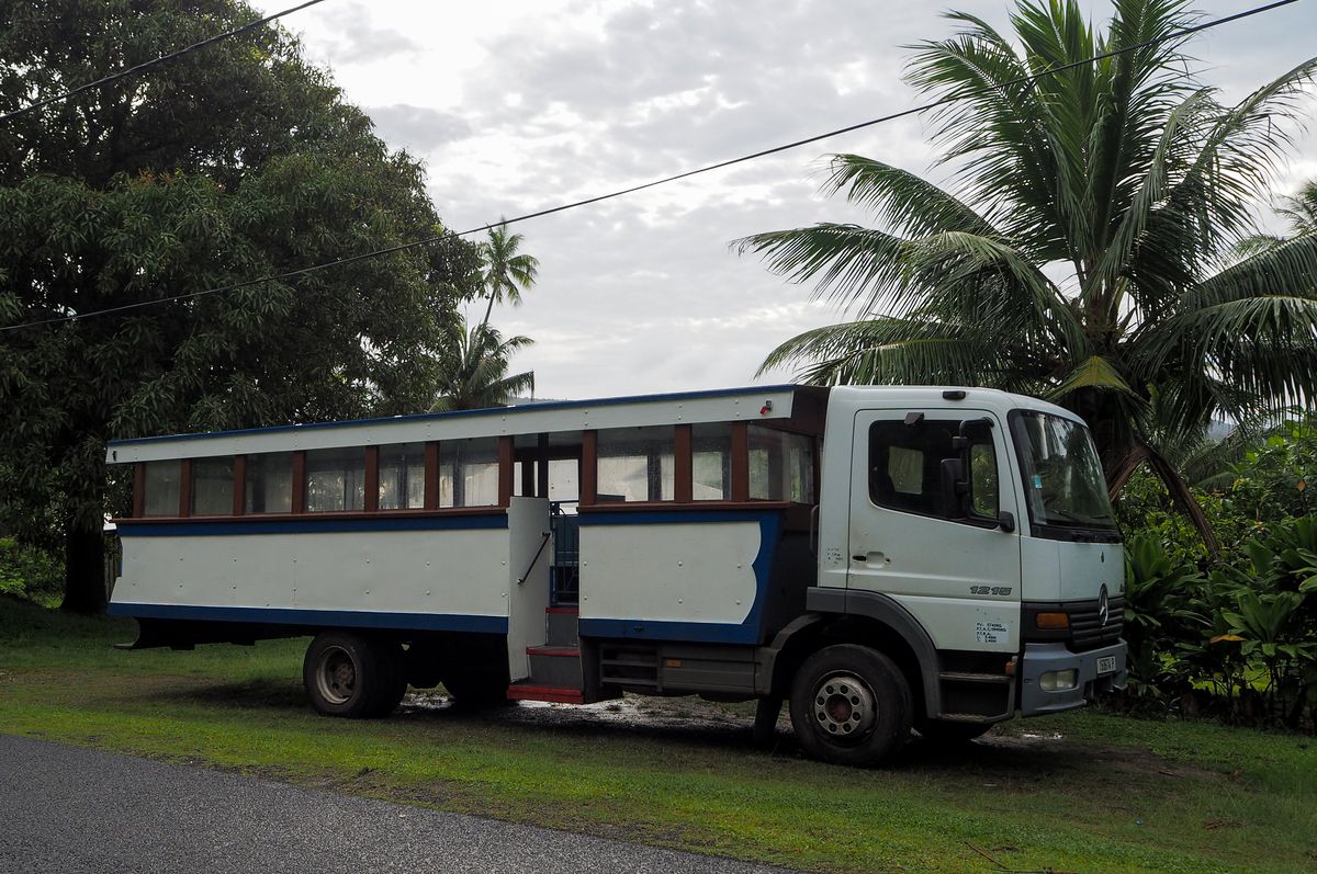 Pas grand chose à voir du côté des camions et autres véhicules industriels, si ce n'est la curiosité locale que sont les "Trucks" polynésiens : des carrosseries bricolés de bus montées sur des châssis de camions pour servir de transport scolaire sur toutes les îles. J'ai été également surpris de voir encore en activité ce vieux Renault CBH, ou de voir sur Bora-Bora des school bus américains Bluebird.