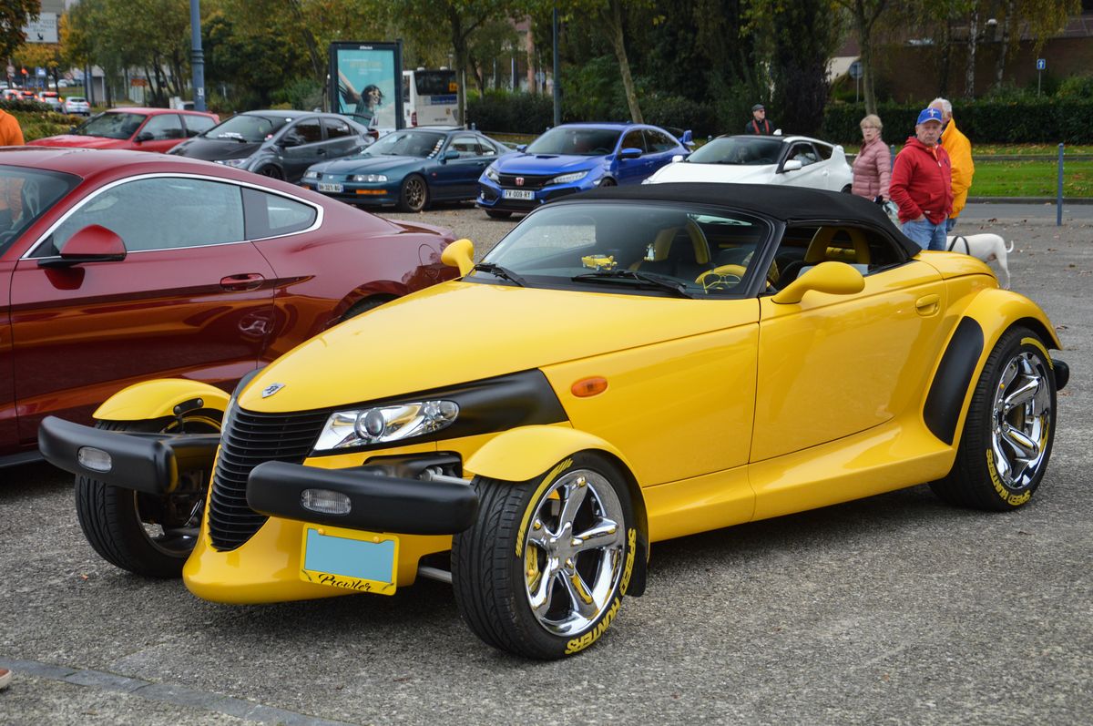 Fort peu d'anciennes Américaines à voir, si ce n'est cette Oldsmobile 98, cette Delorean ou cet atypique Plymouth Prowler.