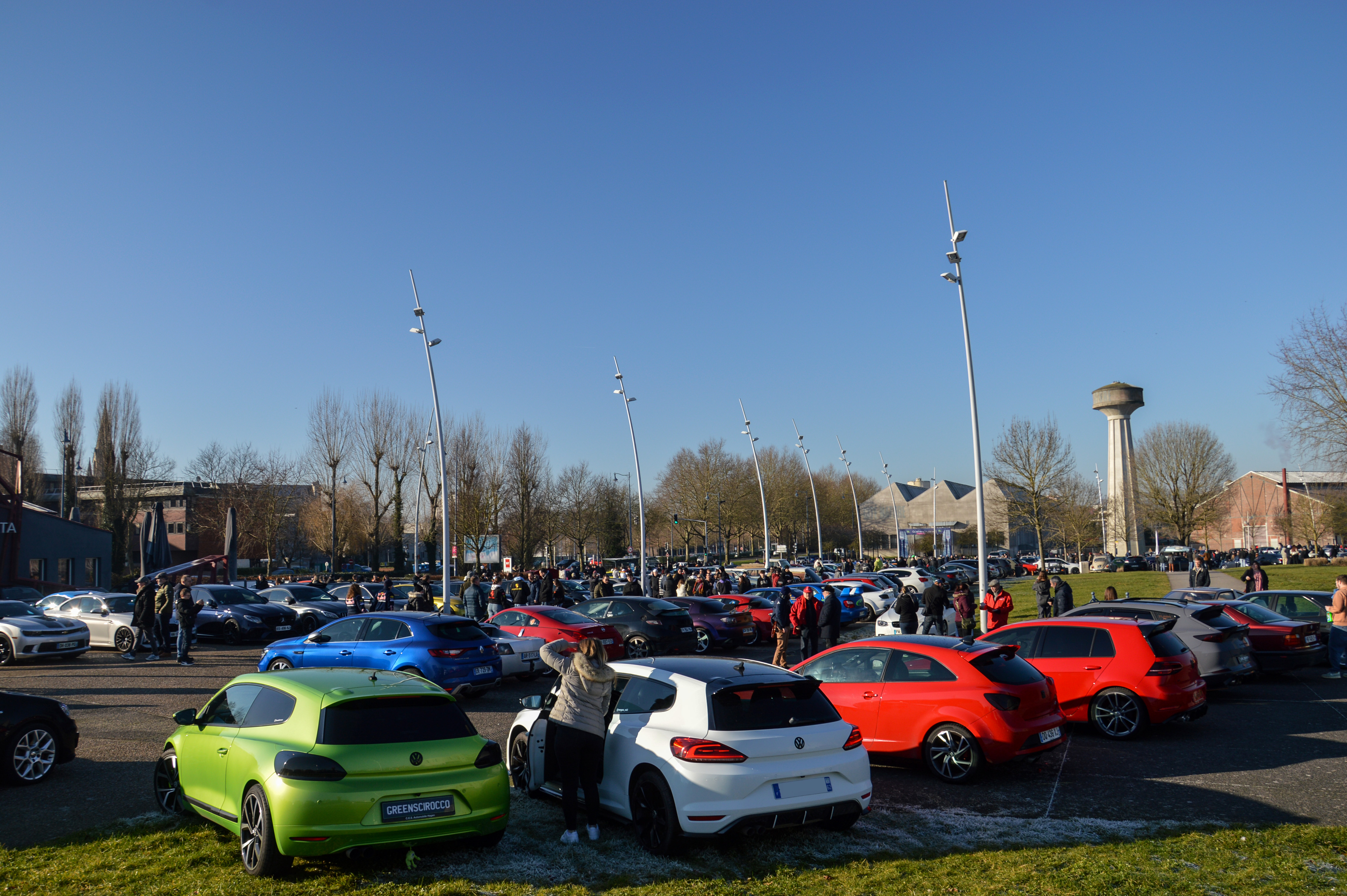 Retour pour la première fois de l'année au du rassemblement mensuel d'Arras, qui se tient tous les premiers dimanches du mois sur la Parvis du Val de Scarpe. Et j'ai été quelque peu surpris de me retrouver dans un embouteillage pour rentrer ! Je suis pourtant arrivé assez tôt mais à priori il y a beaucoup de monde ! Je me suis garé à l'extérieur car je n'ose imaginer le temps que ça va prendre pour en sortir. Mais en rentrant, je constate qu'on trouve énormément de Golf GTI et consorts en tous genres.