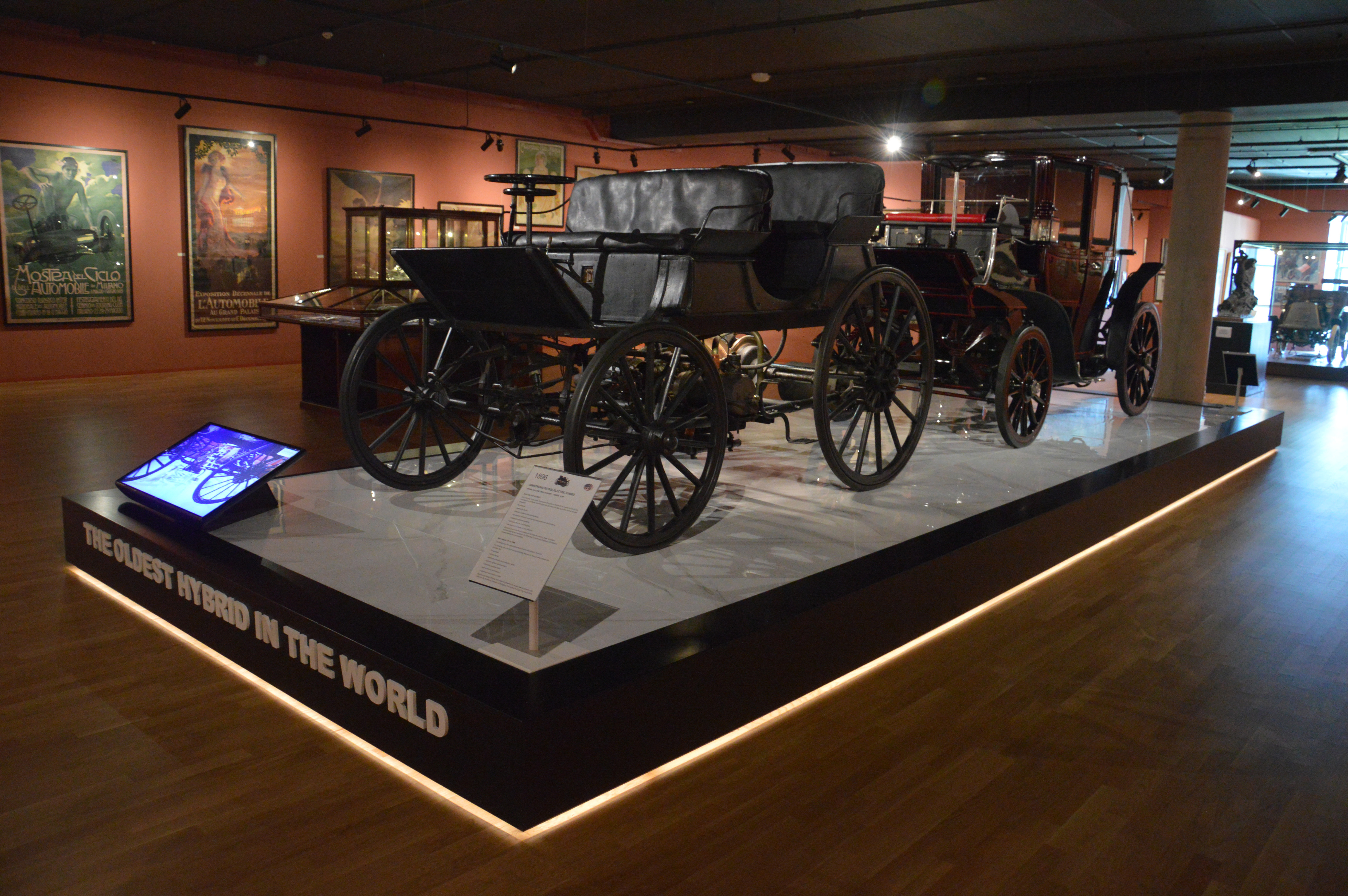 Retour au musée, pour le 2ème étage, qui commence par une partie consacrée à l'art. On y trouve la première voiture hybride de l'histoire, une Amstrong de 1896.