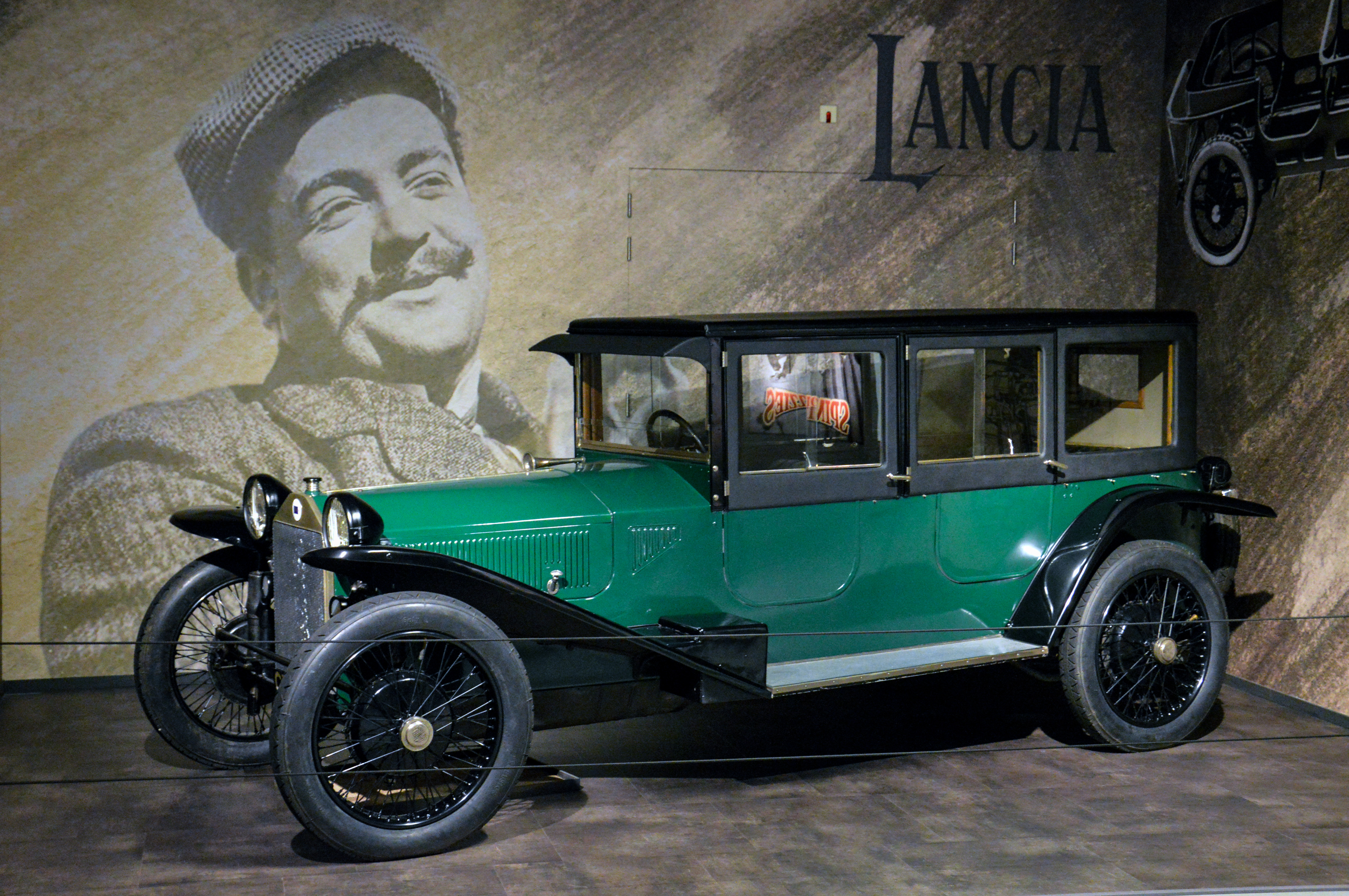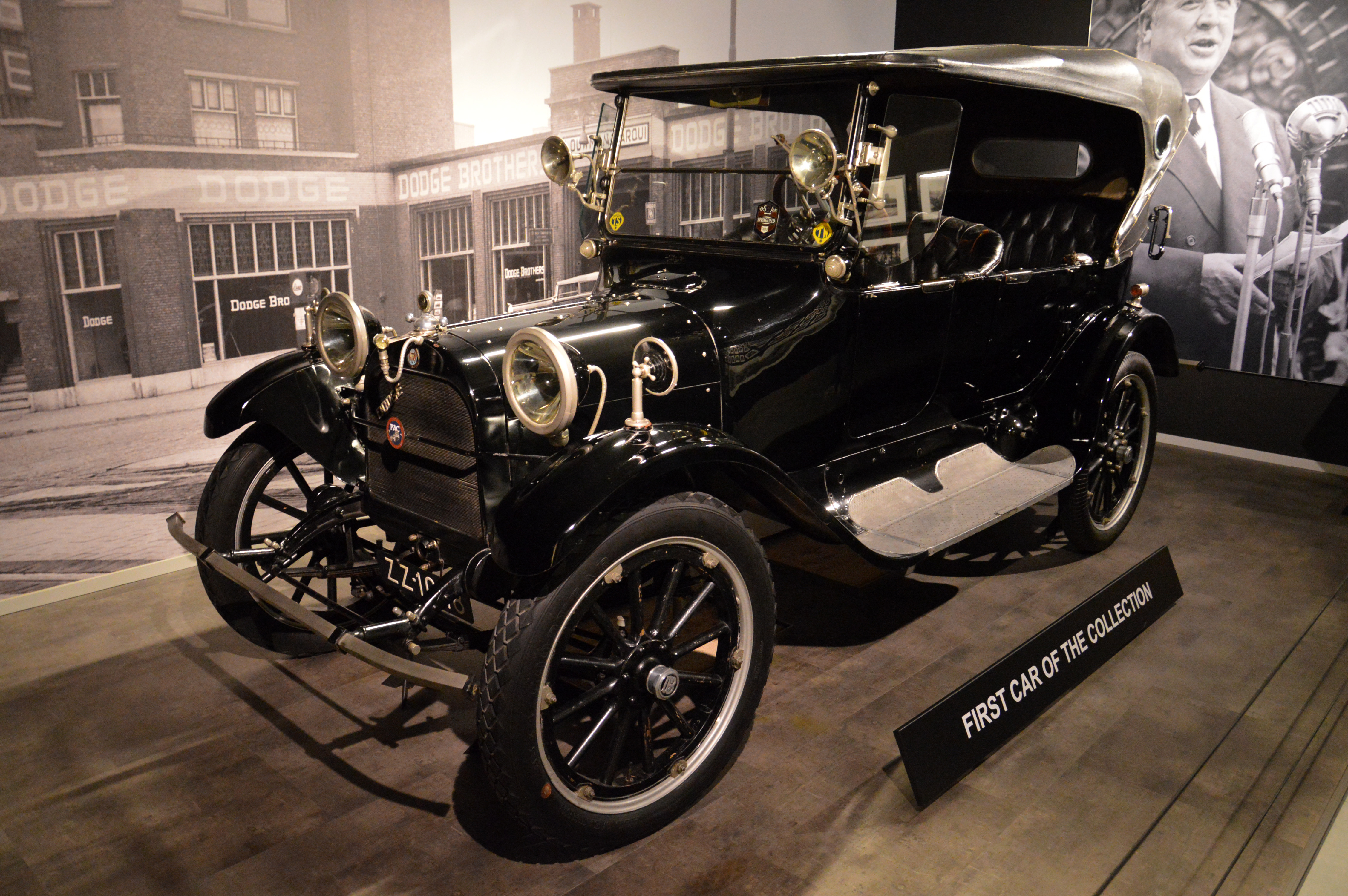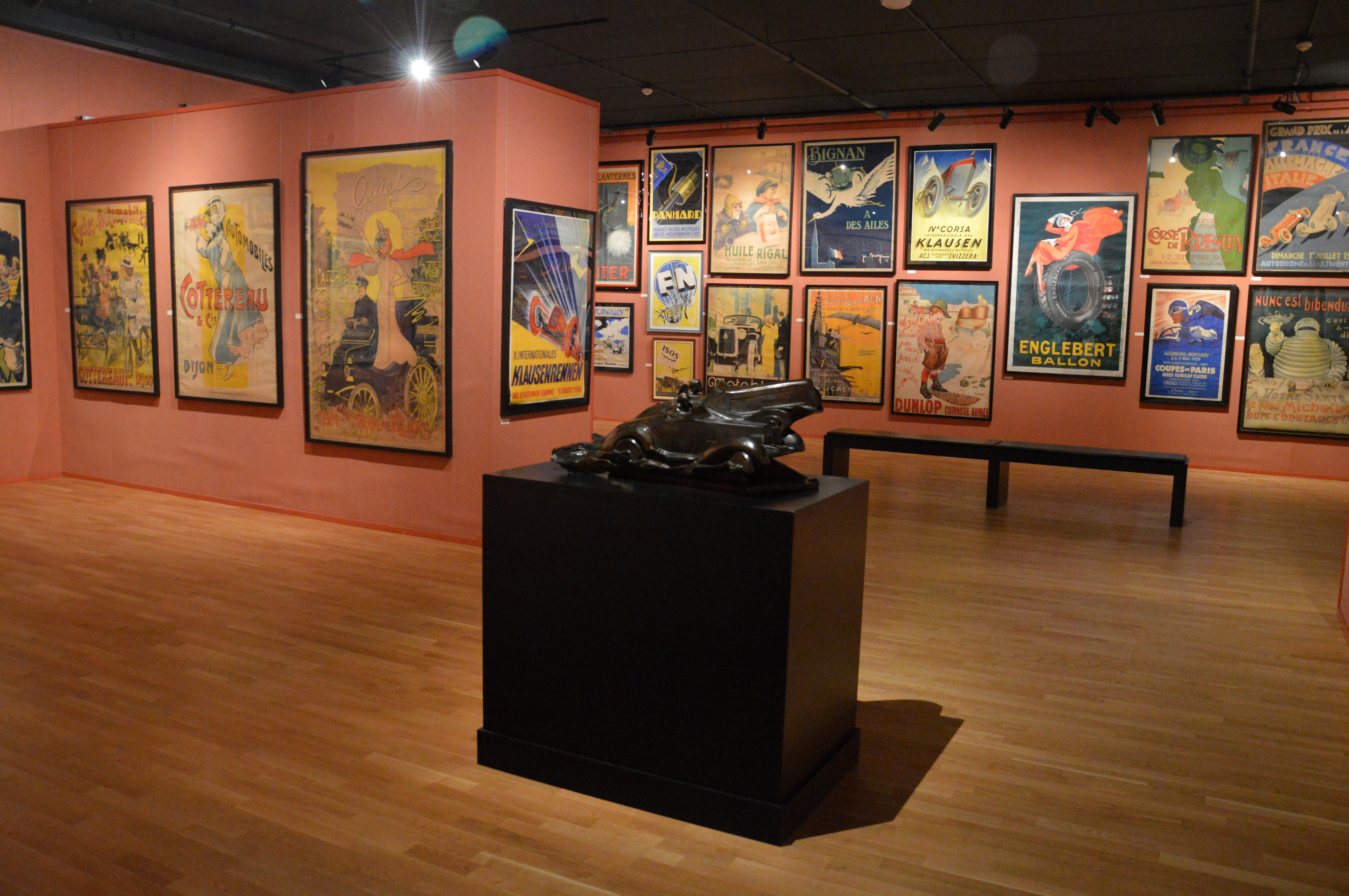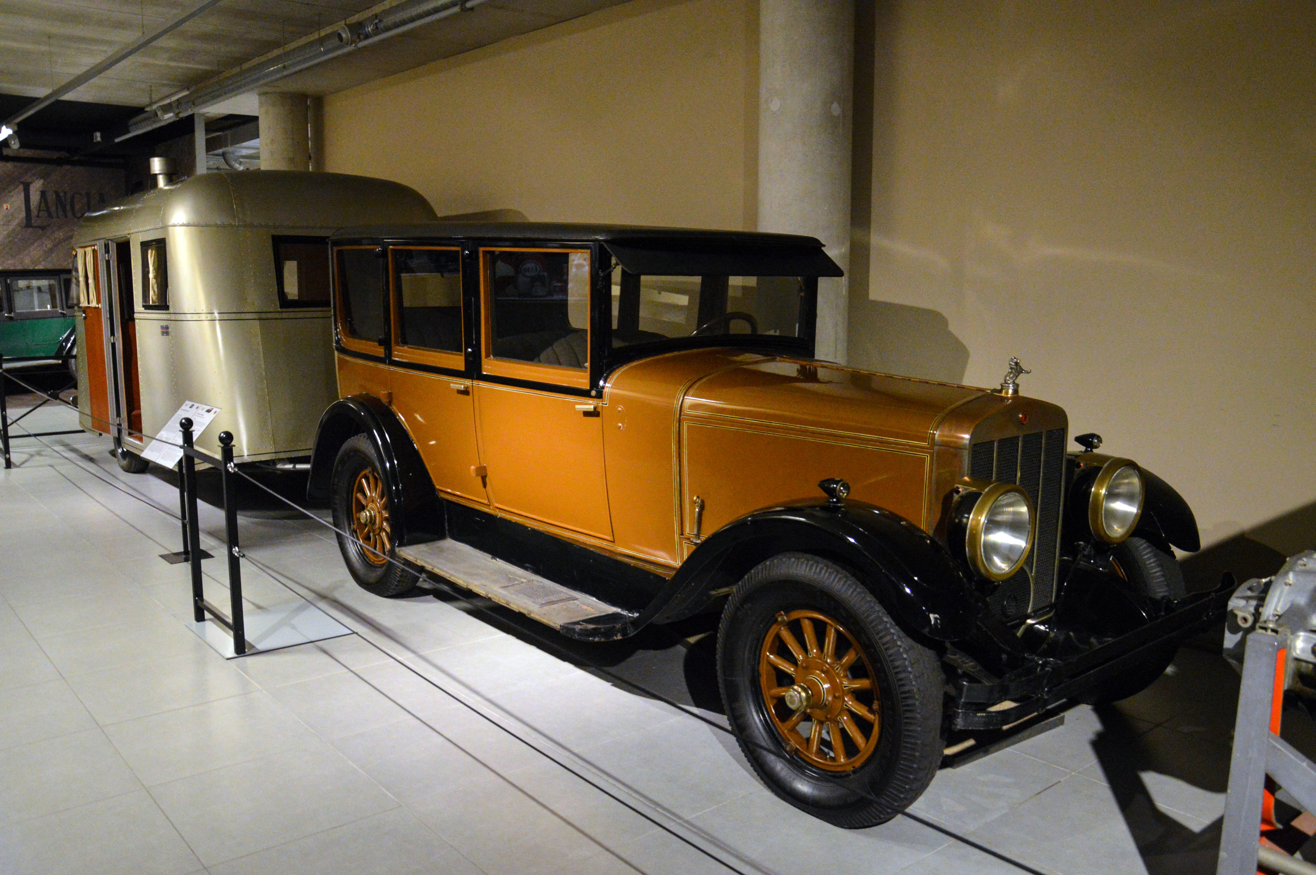 Différentes alcoves : une Dodge de 1914,la première voiture à être entrée dans la collection, une Franklin 11B tractant une caravane, ou une Lancia Lambda.
