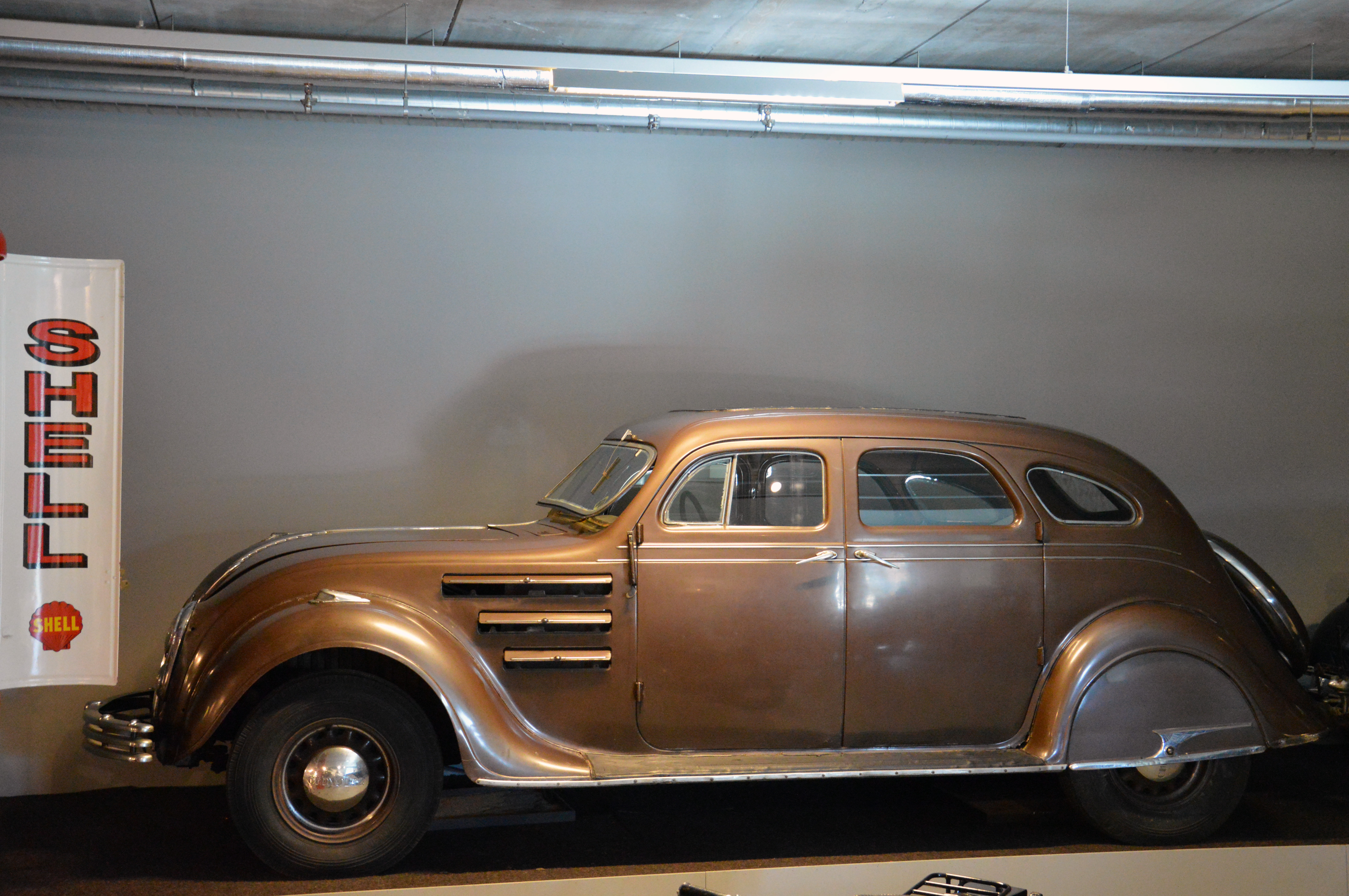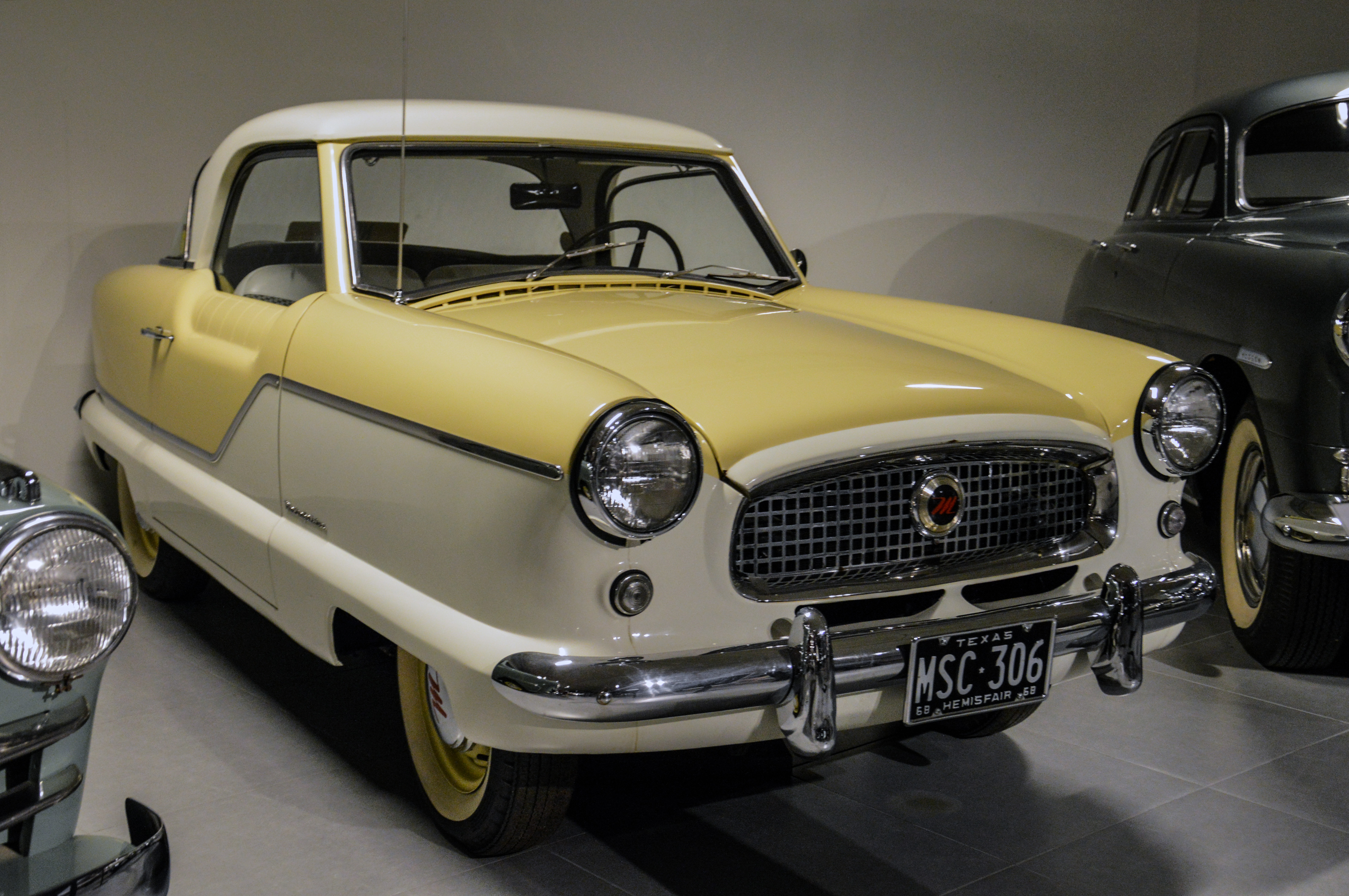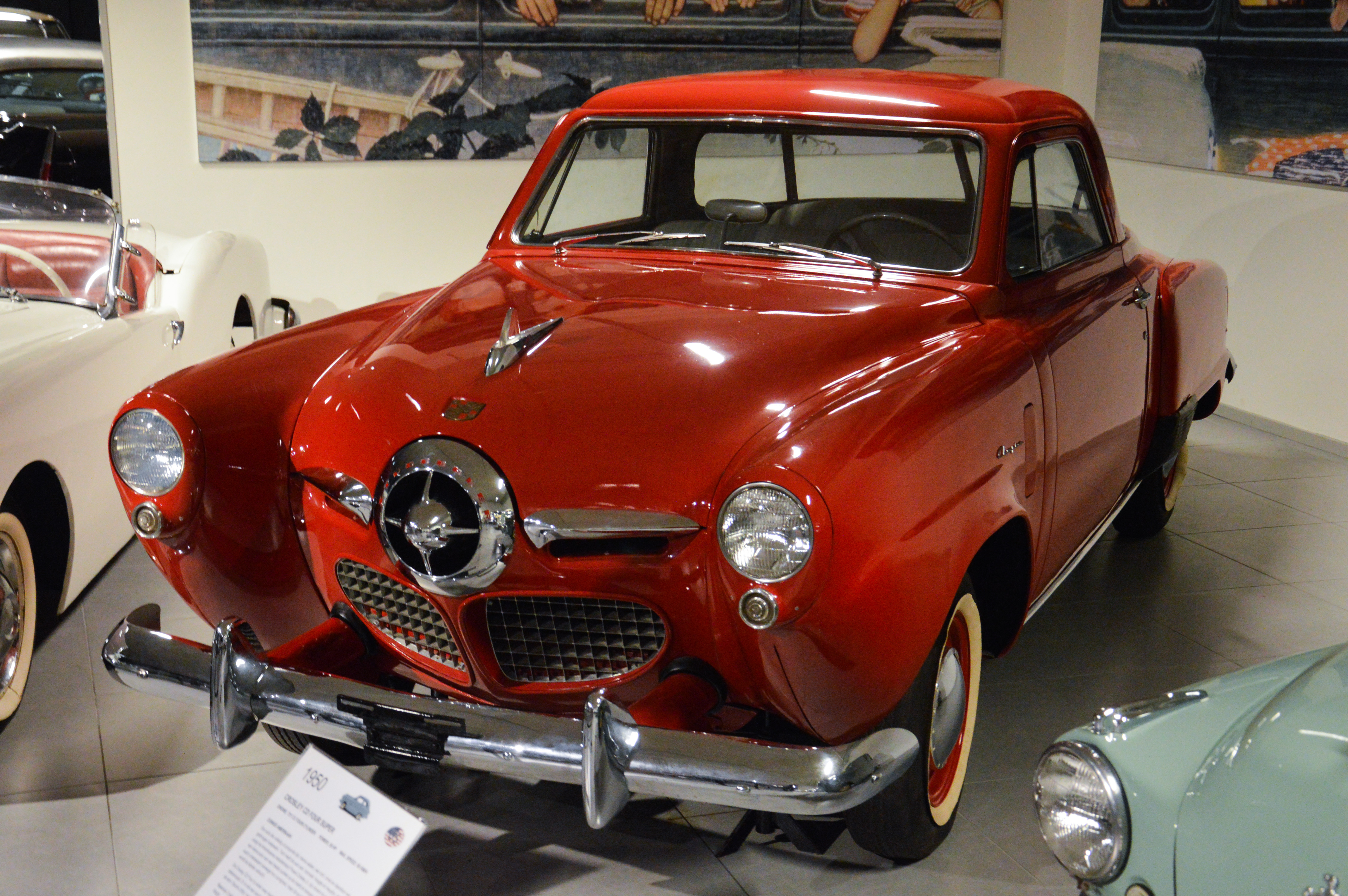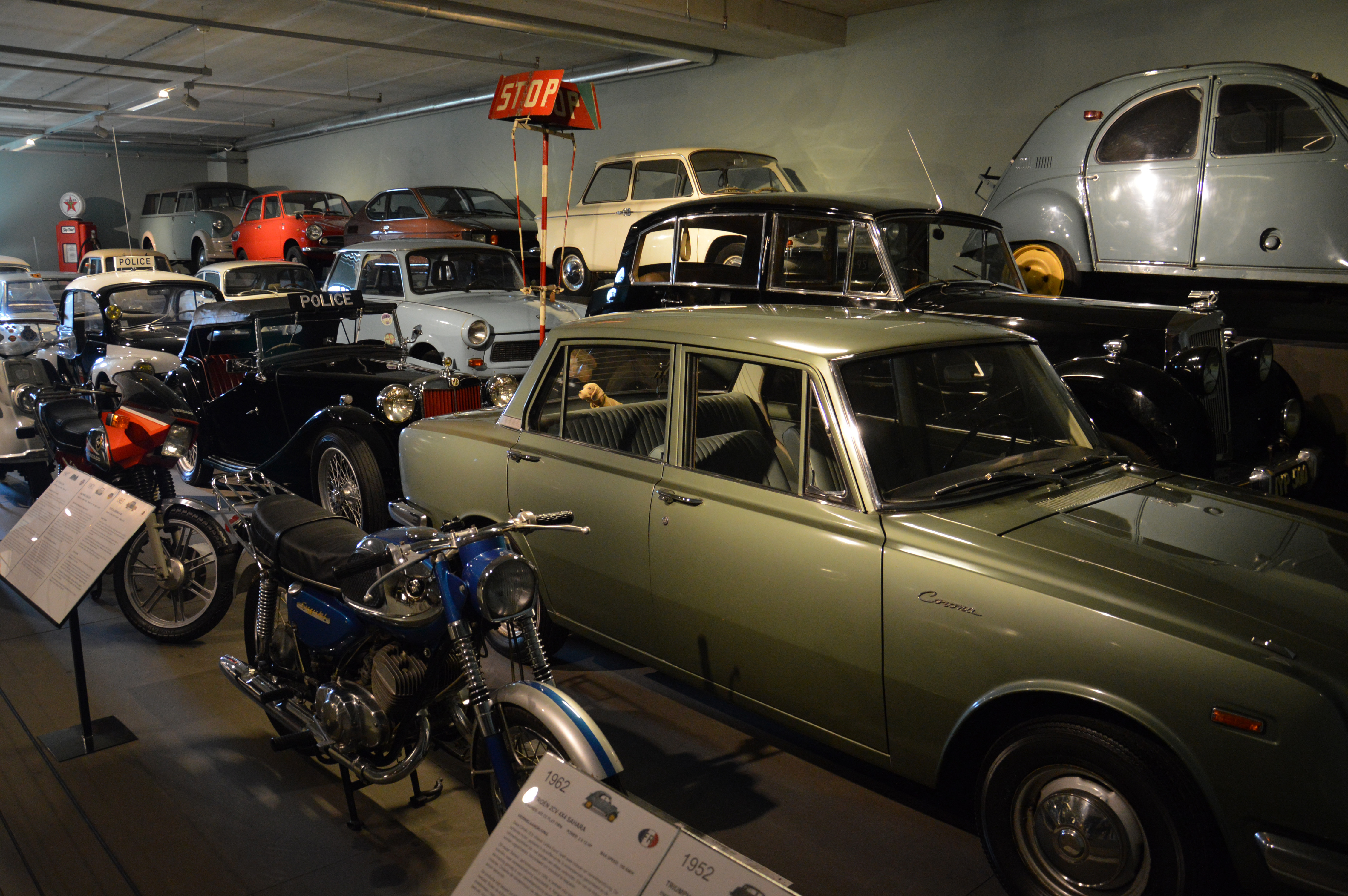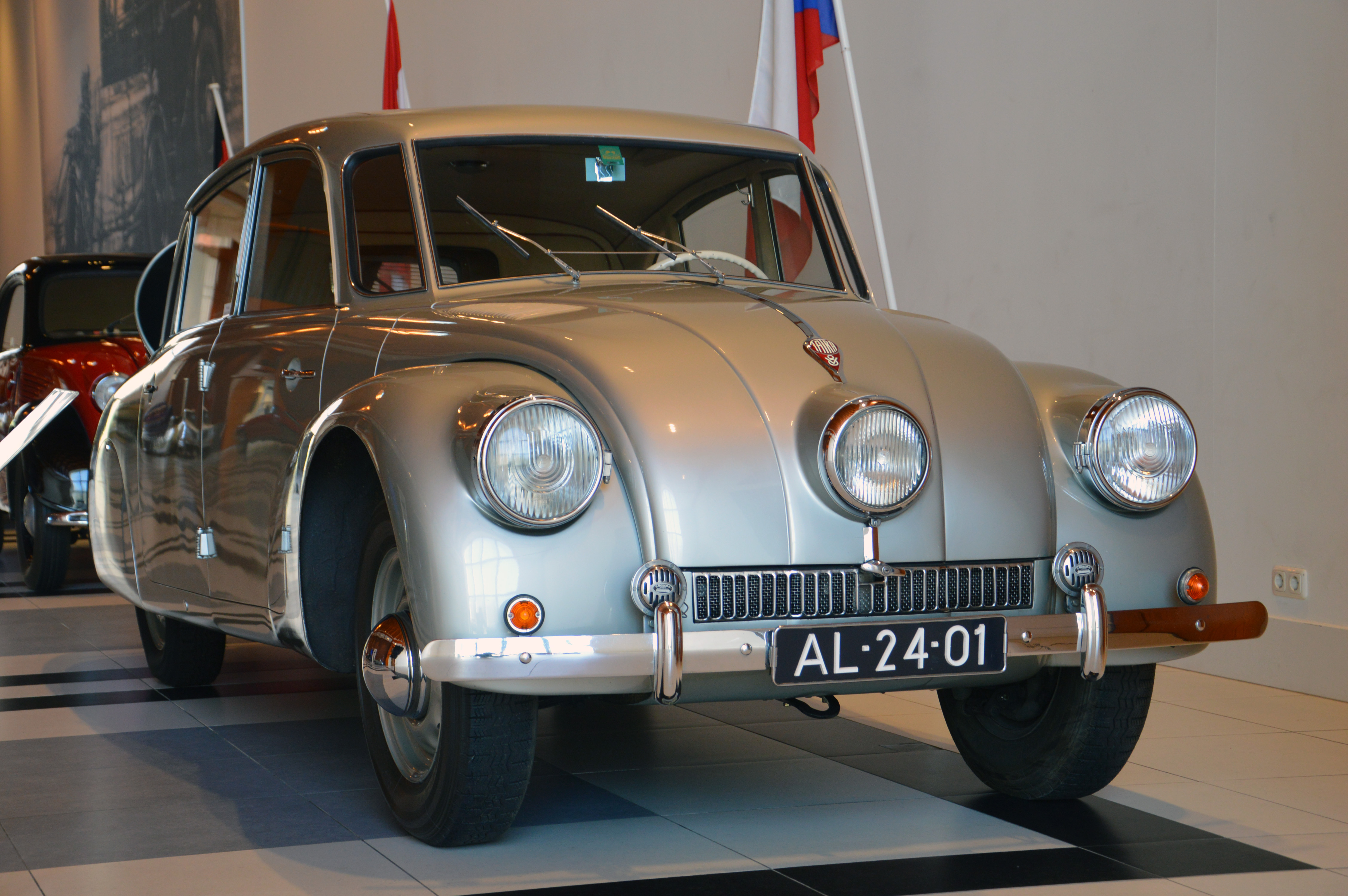 Dans le hall d'entrée, plusieurs pays sont représentés par une voiture. Une Citroën DS pour la France par exemple. Ici, l'Italie (Lancia Astura), la République Tchèque (Tatra 87), les USA (Corvette C2), ou le Japon (Toyota 2000 GT).