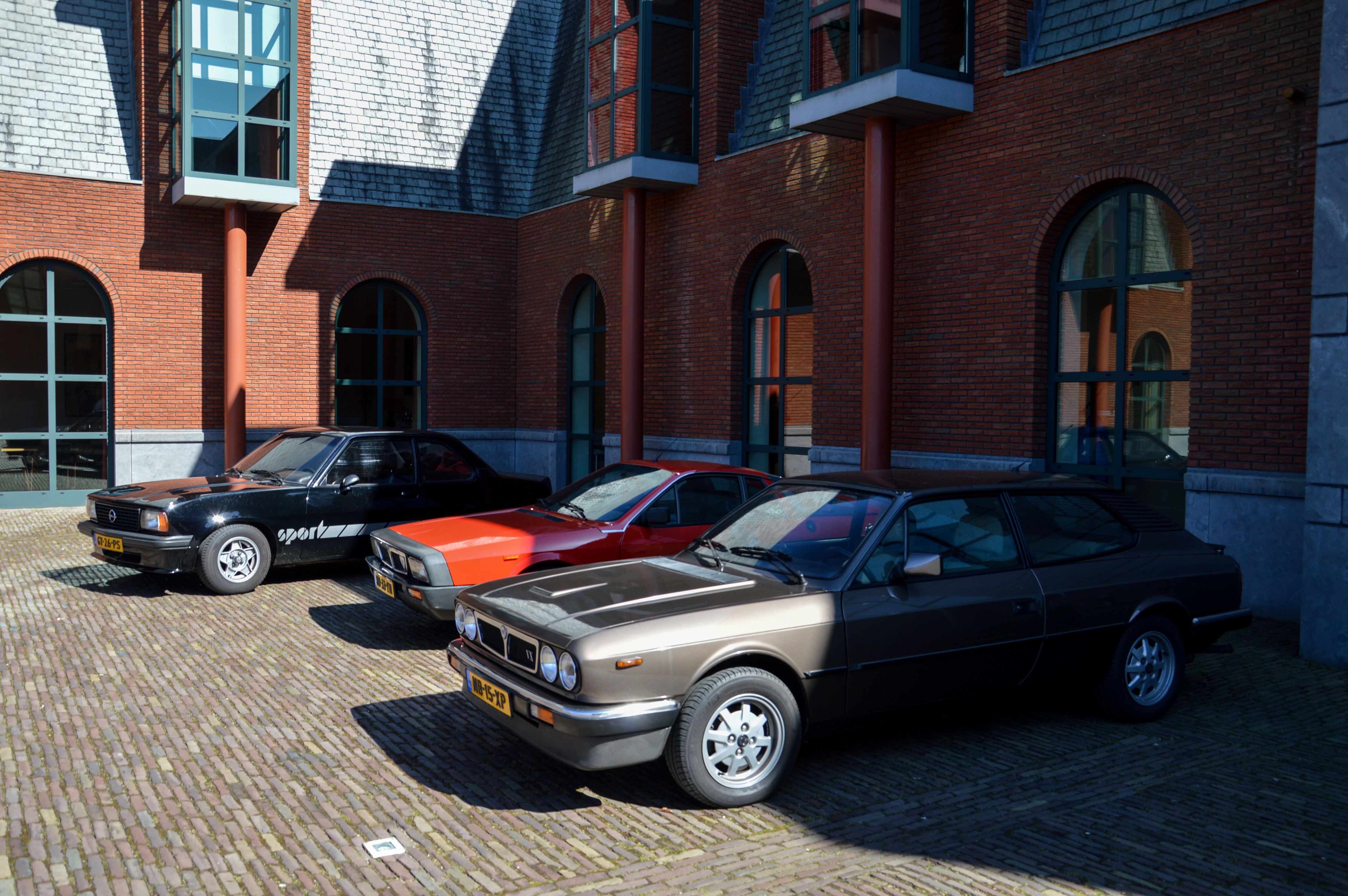 Encore une dernière partie, la petite esplanade devant le musée peut se remplir de voitures de collection puisque celles de plus de 40 ans y ont droit à la gratuité. L'occasion de voir deux jolies Lancia et une Opel.