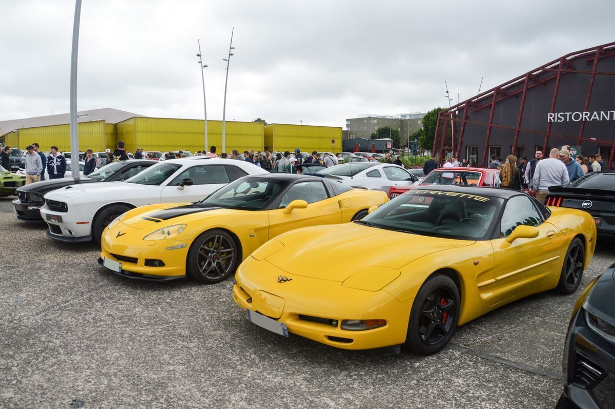 Les modernes sont également présentes en force : ma C6 avait trouvé place à côté d'une belle C5 jaune, une autre C6, des Mustang S550 ou encore une rare Shelby GT500.