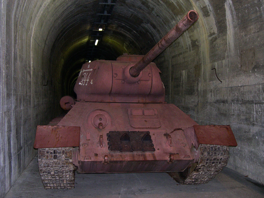 Visite du musée de la Coupole d'Helfaut pour la nouvelle exposition consacrée à la Guerre froide. Le Musée Royal de l'Armée de Bruxelles a prêté pour l'occasion un char russe T34/85 qui a été placé dans le tunnel d'accès du bunker souterrain.