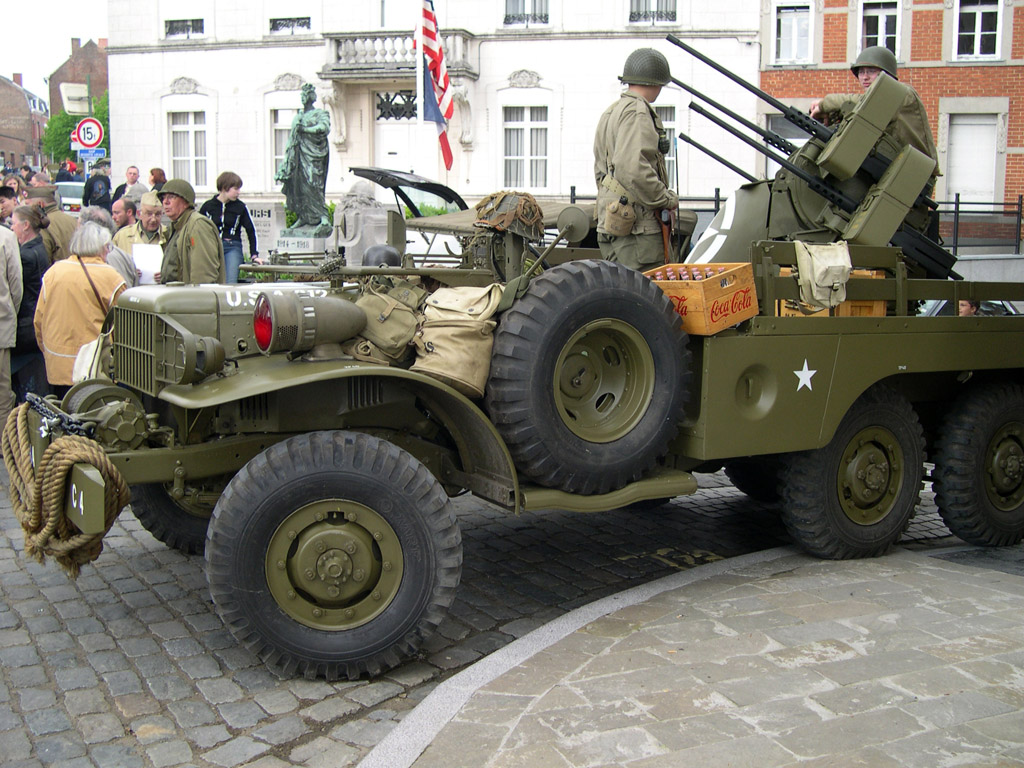 Nous reprenons la voiture et allons faire un tour du côté du camp américain, situé de l'autre côté de la frontière, à Condé-sur-l'Escaut, en France. Mais les véhicules sont déjà partis et seuls restent ces deux Dodge WC 52.