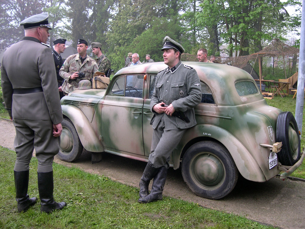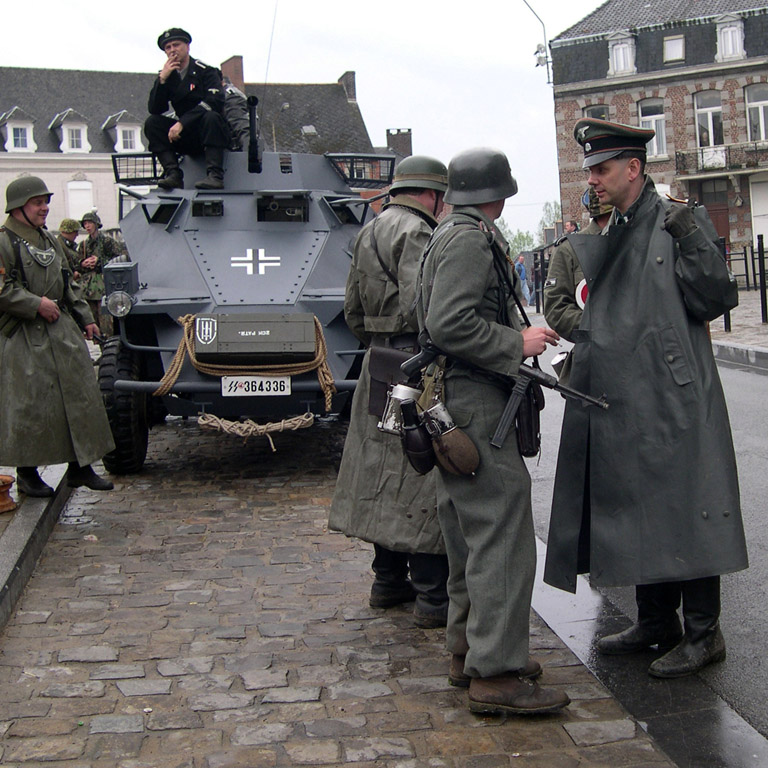 Le matin, nous arrivons au camp allemand, situé à Bon-Secours en Belgique. L'ambiance était assez étrange. Divers véhicules étaient présents : réplique de Sd.KfZ 222, Opel Olympia, Kübelwagen, Opel Blitz,...