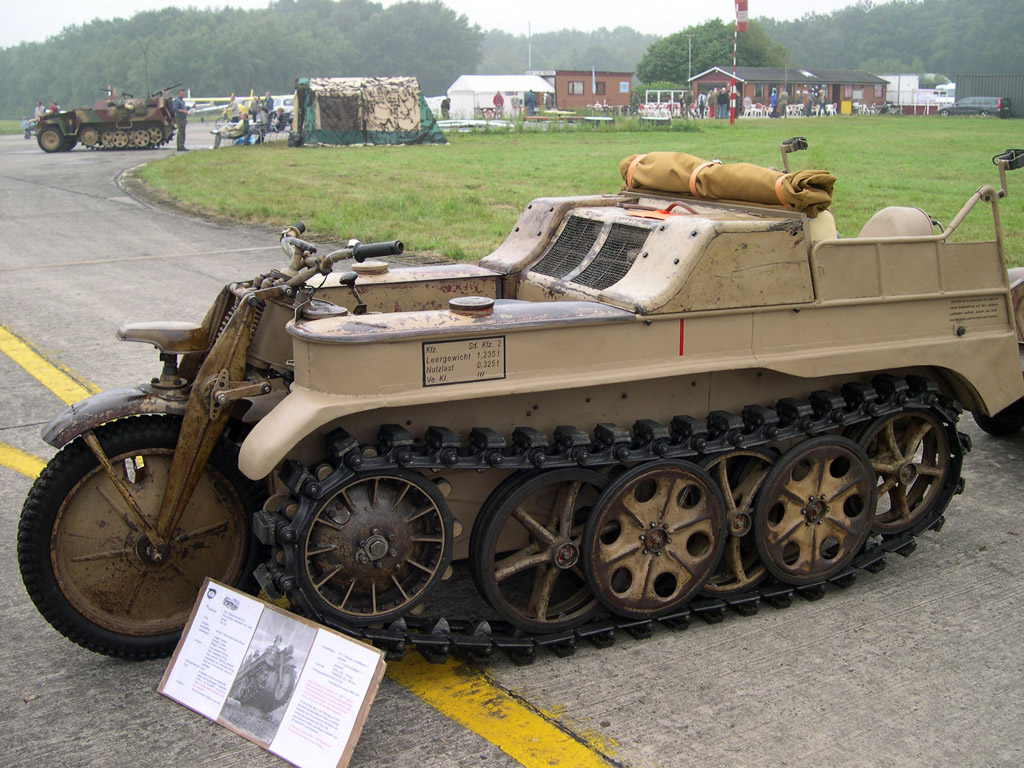 Ou plusieurs rares véhicules britanniques : Austin K2 ATV, GM C60X, Chevrolet Canada C8 ambulance ou allemands comme cette Kettenkrad.
