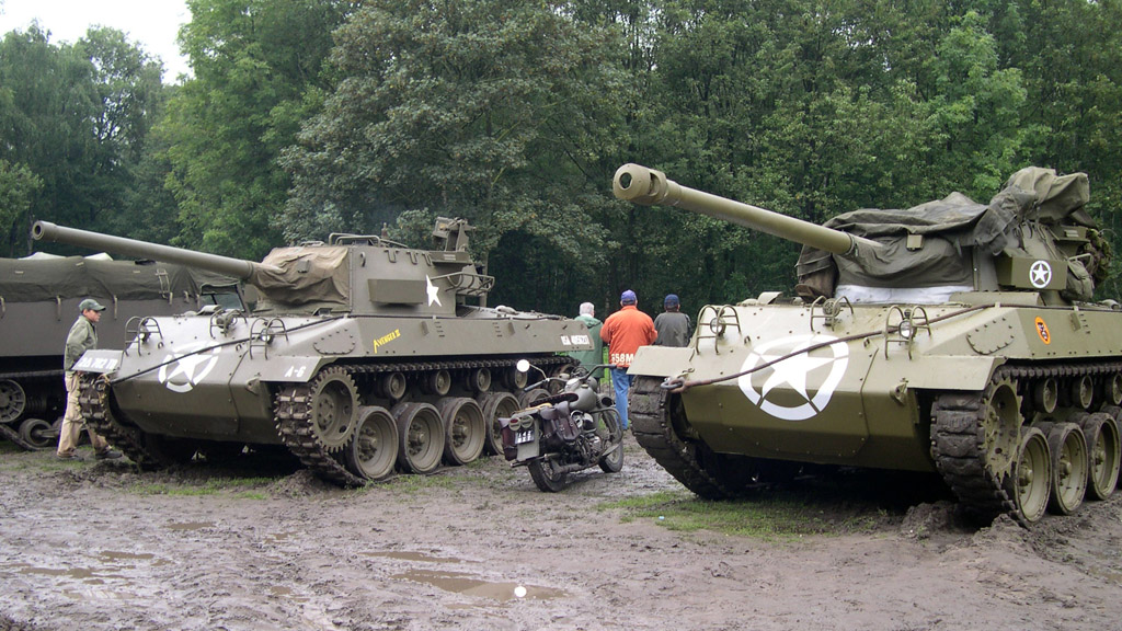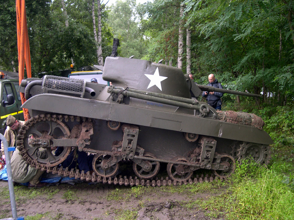 Tout d'abord les chars légers : deux Stuart M5A1, un M24 Chaffee, et un très rare char conçu pour l'aéroportée : ce M22 Locust tout juste restoré par les équipes du Musée Royal de l'Armée de Bruxelles.