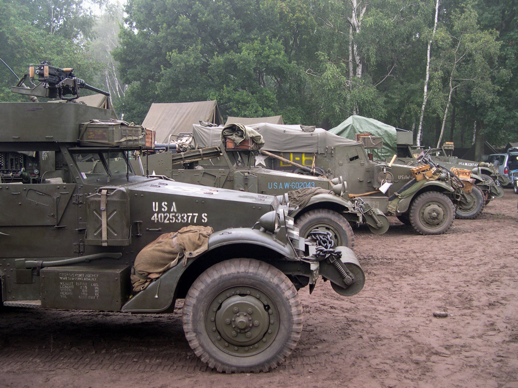 De nombreux véhicules sont à observer : Chevrolet T17 Staghound, Dodge WC64 KD, Jeep Willys, GMC CCKW, Kettenkrad, Chevrolet Canada C60, Weasel M29, M3 Half-track ou ce rare Karrier K6 britannique.
