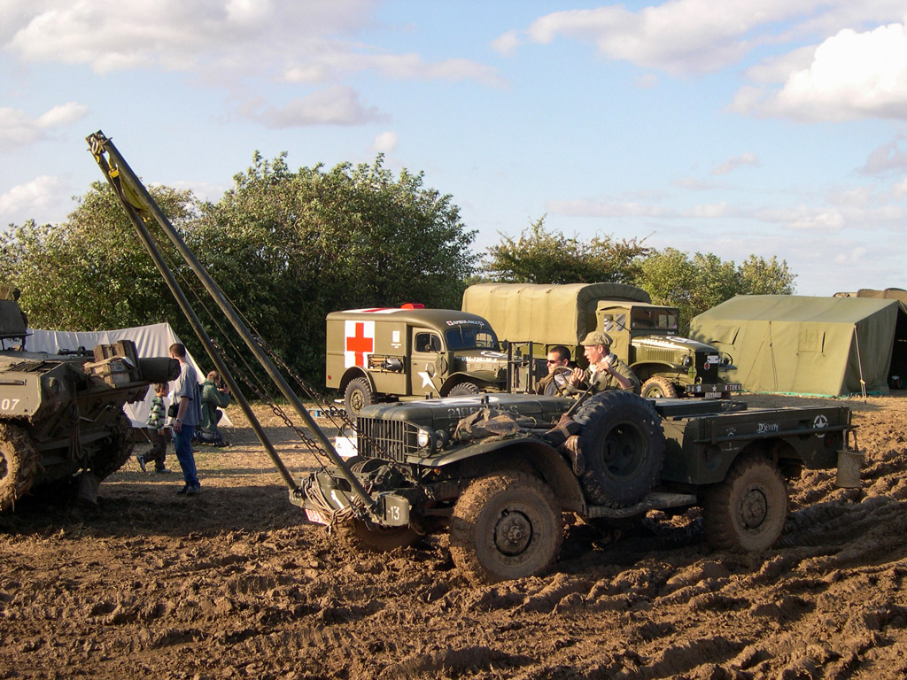 Les autres véhicules du camp : Diamond T 981, Dodge WC52 équipé d'une chèvre de levage ou le Pacific revenant d'un convoi.
