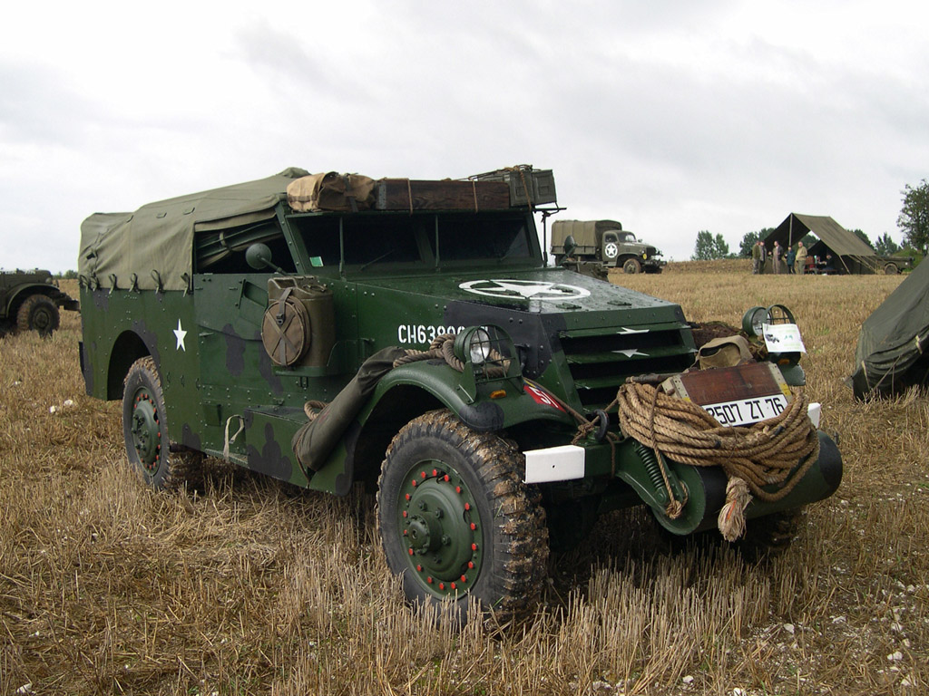 Un très rare International M-2-4, développé pour l'US Marine Corps, une Ford M8 ou un ensemble original : un GMC CCKW 353 transportant un projecteur.