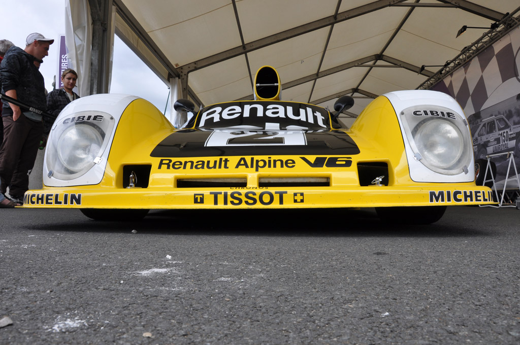 Plus loin, sous une tente, plusieurs véhicules du département Histoire de Renault sont exposés au public dont cette Alpine A442, victorieuse des 24h du Mans en 1978.