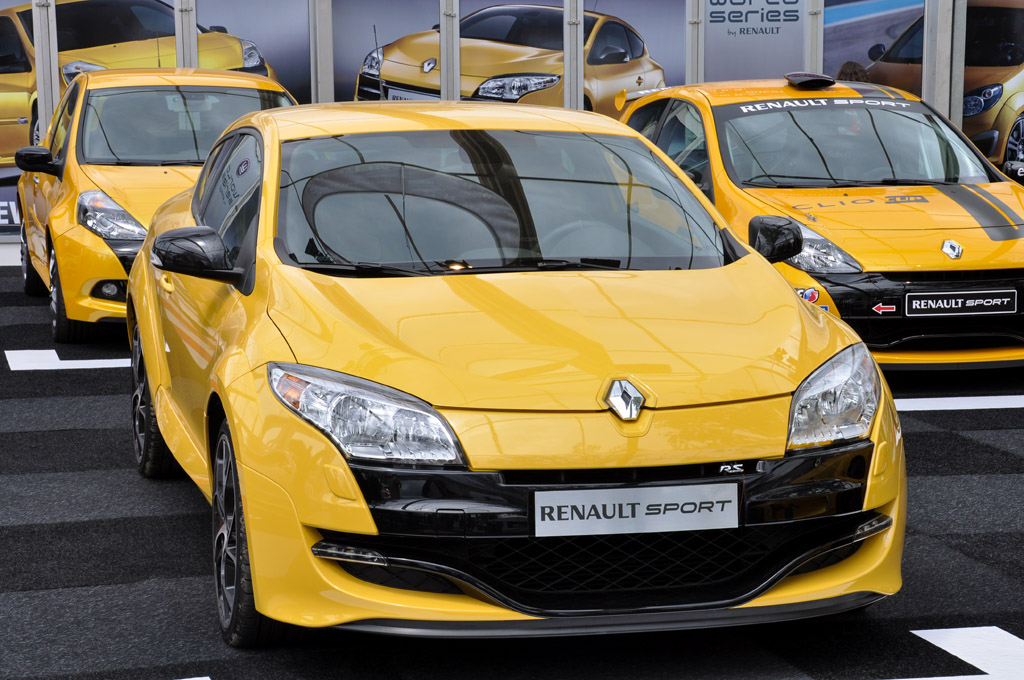 Dès l'entrée nous sommes accueillis par des rangées entières de modèles sportifs de la marque au losange : Spider, Spider, Mégane et Clio RS.